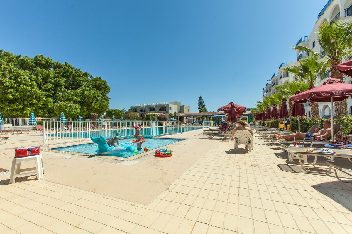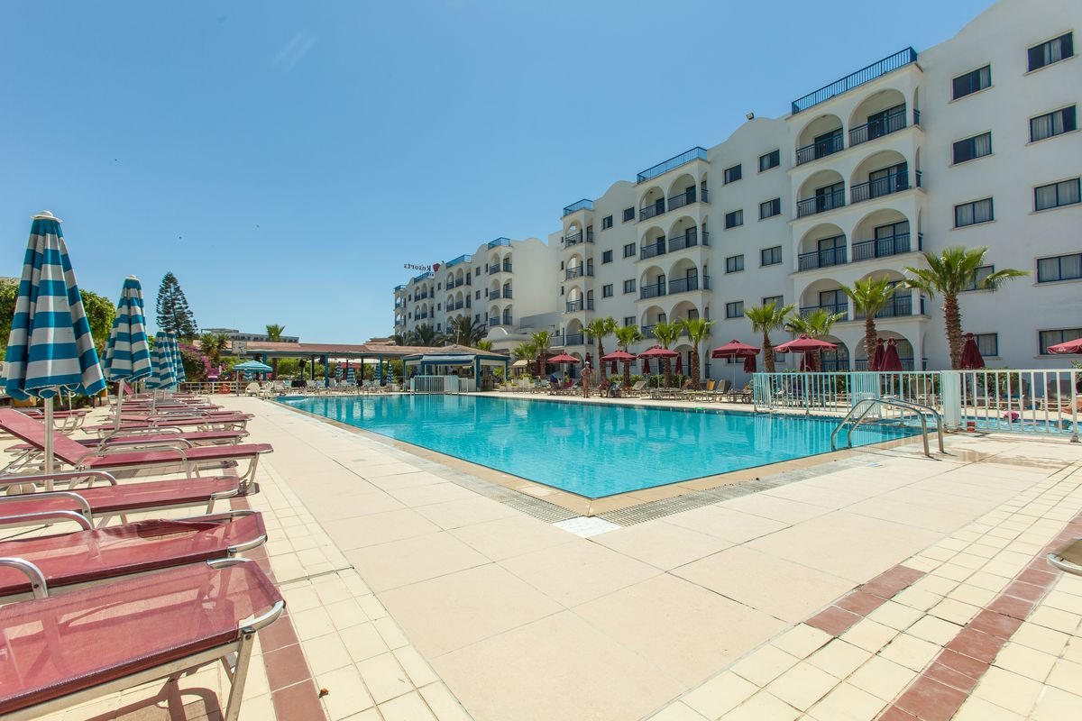 Комфортный вариант для экономичных туристов. Если вы летите на Кипр ради моря и солнца, обратите внимание на этот отель. Он подойдет для семейного отдыха. В номерах есть кухонные уголки — важная деталь, если вы путешествуете с детьми или привыкли к специальному рациону. Пляж тоже рядом: всего в 300 метрах от отеля. На территории отеля есть бассейн и детская игровая площадка под тентом. Находится гостиница в тихом районе, поэтому даже самые маленькие гости смогут спокойно уснуть в привычное время.