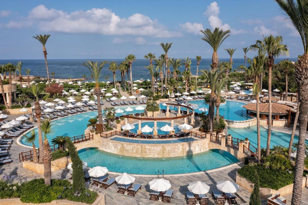 Отель находится прямо на берегу моря, а его большая и ухоженная территория располагает к приятным прогулкам. Здесь один из лучших спа-центров на Кипре, поэтому приехав сюда в межсезонье или зимой, вы не почувствуете нехватки моря. Инфраструктура отеля включает крытый бассейн, детский клуб и уединенные зоны только для взрослых, изысканные ala carte рестораны. Обслуживание и сервис здесь неизменно на высоте. В отеле есть потрясающий многоуровневый открытый бассейн с гидромассажной зоной. К услугам гостей также теннисные корты. Насыпной пляж в шаговой доступности от отеля.