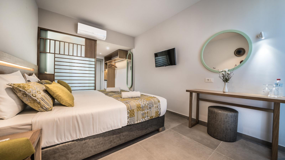 Отель расположен в местечке Адельянос Камбос, в 6 км от центра Ретимно, в 70 км от международного аэропорта г. Ираклион.