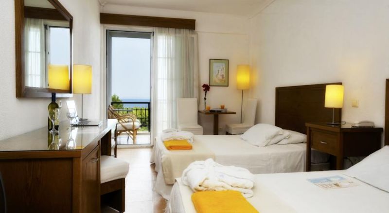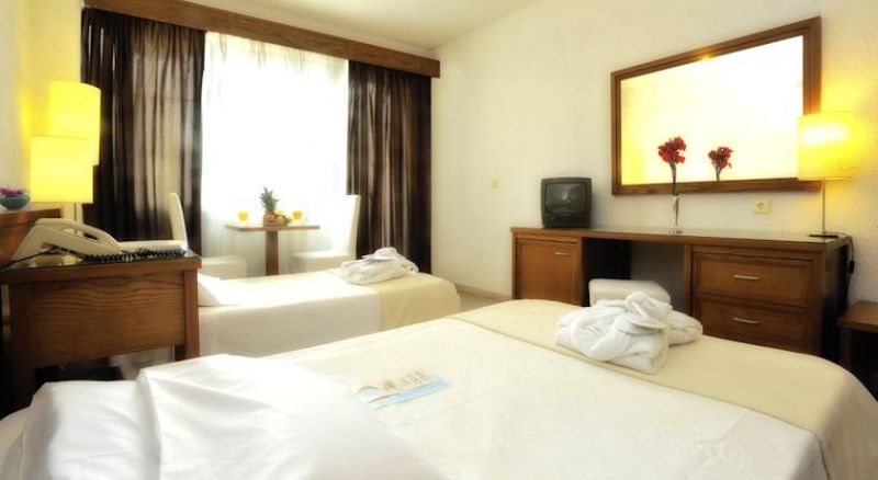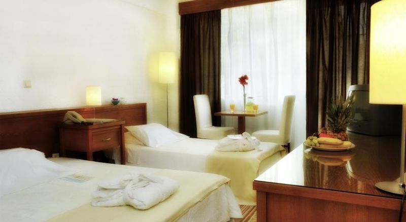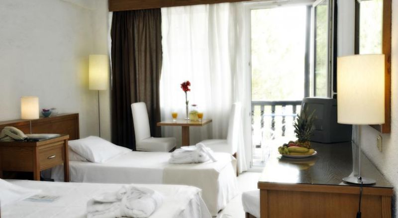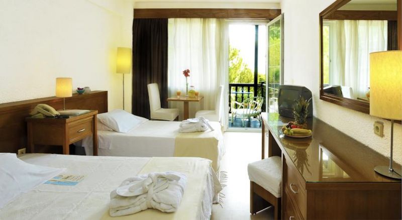 Бесконечный берег с кристально чистой водой, сад с цветами, сосновые деревья - все вокруг придает этому месту необычный курортный колорит. Широкий выбор номеров, ресторан, таверна, бары, бассейн, спорт, развлекательные программы. Отель подойдет для любой категории туристов, а также любителям сочетания спокойного и активного отдыха.