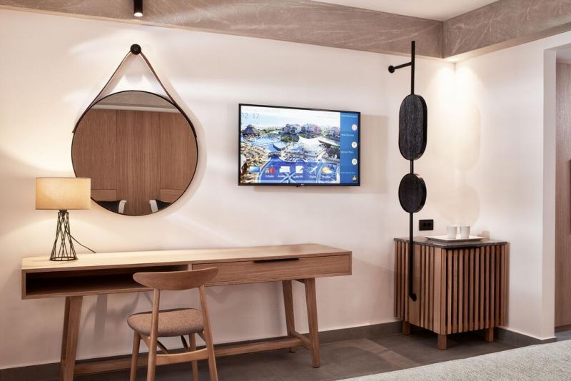 Отличный семейный и качественный отдых. Отдыхали в Atlantica Sensatori Resort в период 15-22.06.2017, 2 взрослых ребёнок. Отель понравился во всем, начиная от расположения и заканчивая питанием. А теперь всё по порядку. Перелет был компанией Россия из аэропорта Внуково, всё выполнено без задержек. Встреча от БиблиоГлобус. От аэропорта Ираклион до отеля с заездом по другим отелям, дорога заняла 50 мин, а если ехать на индивидуальном транспорте, то примерно 15-20 мин. Расположение отеля по удаленности на 5. Прибыли в отель в 10:00 мск (время на Крите такое же как и в Москве), но заселили только в 14:00 мск. Изначально тур покупали с самым дешевым номером, но по факту получили огромный номер 1008 "Pool View", с огромным балконом на первом этаже. Мы даже не огорчились что прождали столько много времени для заселения, это того стоило. Остальным, кто приехали с нами на автобусе, номера выдавали на второй линии отеля. Так что думаем с номером нам просто повезло. Номер огромный, большая кровать, полноценная кровать для ребёнка, диван, стол, кресло, телевизор, минибар (пиво, вода, пополнение каждый день), балкон (4 стула и стол), халаты, тапочки, гладильная доска, утюг, большой туалет (отдельный душ, ванна). Номер на 5. Питание во отеле All Inclusive, браслеты в номере не дают, номер комнаты постоянно спрашивают в барах и ресторанах. Питание качественное. Завтрак: яичница, омлет, бекон, каши, мюсли, рыба, сыры, колбаса, детский стол, свежевыжатые соки, чай, кофе, шампанское и т.д.. Обед: можно питаться в любом ресторане, выбор блюд очень обширный, всё не перечислишь... Ужин: в основном ресторане очень скромный, выбор блюд минимальный по сравнению с обедом. Ужин в ресторанах A La Carte по записи. В общем за питание 4 . Бар: очень вкусное кофе в "Fresco Bar" около бассейна. На выбор очень много напитков: Пиво Alfa, вино, шампанское, Bacardi, Smirnoff, Martini (4 вида), Macallan, Jameson, мороженое 4 вида и многое другое. Имеется еще выбор элитных алкогольных напитков, но они за доп. плату. Море и пляж: пляж песочный, заход в море отличный, для детей самое то, т.к. вход очень мелкий и долгий. В море удалось покупаться около 4 дней, в остальные дни штормило, но это нормально для Крита. Бассейн: вода в бассейнах соленая, но это не напрягает, а наоборот нравится. На водных горках вода в бассейнах пресная. Анимация: как таковой анимации в отеле нет, все конкурсы проходят в бассейнах и не навязчиво. Присутствует отличный детский клуб на первом этаже, огромное Спасибо Лилии за работу, ребёнок очень доволен и с удовольствием посещал данное мероприятие каждый вечер. Анимация для детей на английском языке. Вечером в 22:00 около лобби проходят разные концерты, в самом лобби вечером играют на гитаре и пианино. Отель в основном сделан под Англичан, русских в отеле около 30%. В общем отдыхом полностью довольны, и всем советуем посетить этот качественный отель. Спасибо Atlantica Sensatori Resort!!!