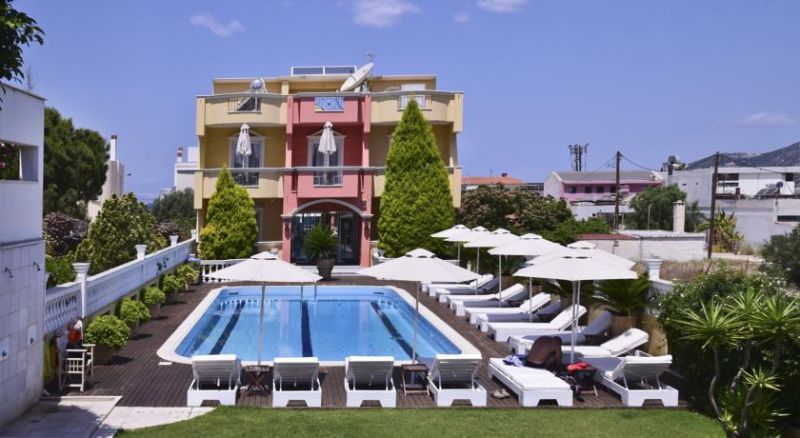 В 500 м от центра г. Лутраки, в 100 км от международного аэропорта «Эл. Венизелос» г. Афины, в 84 км от Афин.