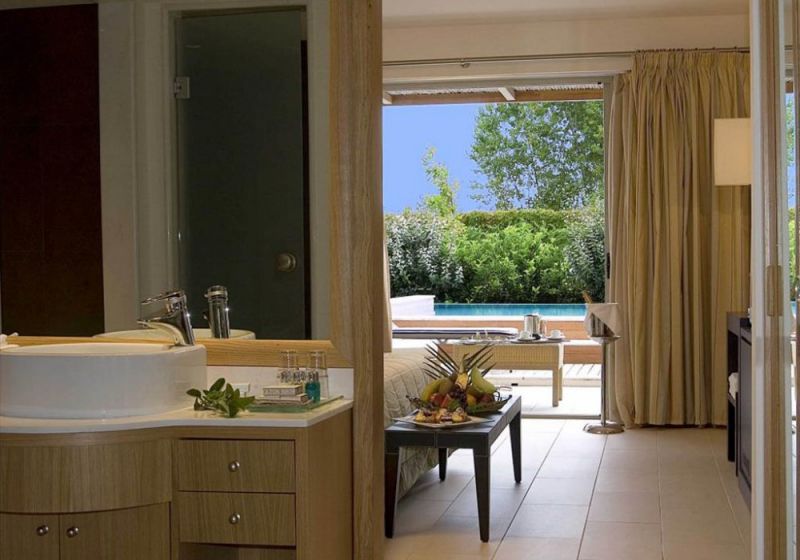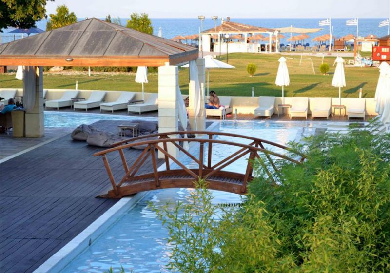 Спа Adriana Karembeu Spa Center (1200 кв.м) Крытый подогреваемый бассейн, джакузи, гидротерапия, тренажёрный зал, сауна, хаммам, диетолог, пластический хирург, процедуры по уходу за лицом и телом с исп. воды из источников горы Олимп, маникюр, педикюр, ароматерапия, шоколадная терапия, ритуалы, душ Виши, горячие камни и др.! Джакузи, сауна, крытый бассейн – 1 раз в неделю, бесплатно