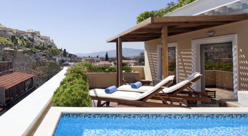 Presidential Suite (Просторная терраса с собственным открытым бассейном с видом на Акрополь, большая кровать, ЖК-телевизор, Бесплатный Wi-Fi Интернет, Прямая телефонная линия в номере и ванной комнате, Рабочий стол с настольной лампой, Электронный сейф, Мини-бар, Бесплатный чай и кофе (ежедневно пополняется), Мраморная ванная комната, Фен , Халаты и тапочки, Увеличительное зеркало в ванной комнате, Утюг и гладильная доска (по запросу))