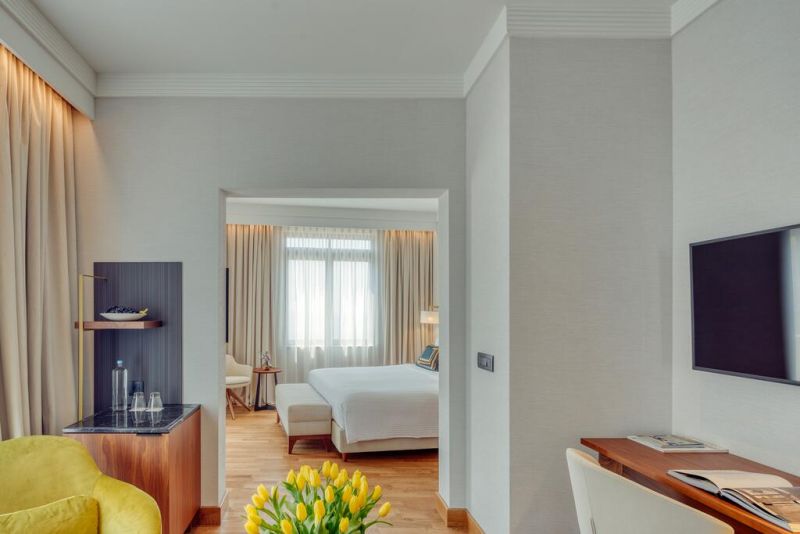 Отель расположен в центре города Салоники на площади Аристотеля, в нескольких минутах ходьбы от основных памятников и достопримечательностей города, в том числе Белая Башня и церковь святой Софии (300 м), Национальный археологический музей и музей византийской культуры(800м), Международный выставочный и конгресс-центр Helexpo(800м), Старый город (1.5км).
