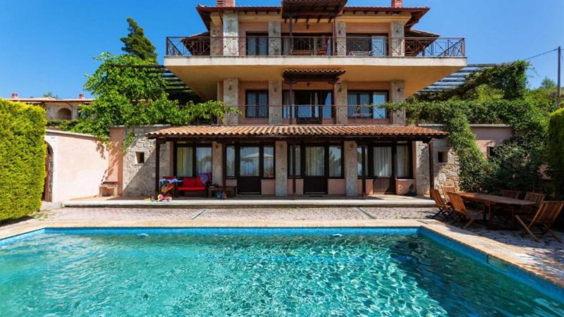 Уникальная комбинация простоты и роскоши. Все дома и виллы построены в традиционном греческом стиле, оформление и ландшафтный дизайн продуманы до мелочей, продиктованы заботой об отдыхающих и гармоничном единстве с природой. Всего 34 роскошных двухэтажных вилл, возведённых исключительно из натуральных материалов, камня и бруса. Общий бассейн для всех вилл.