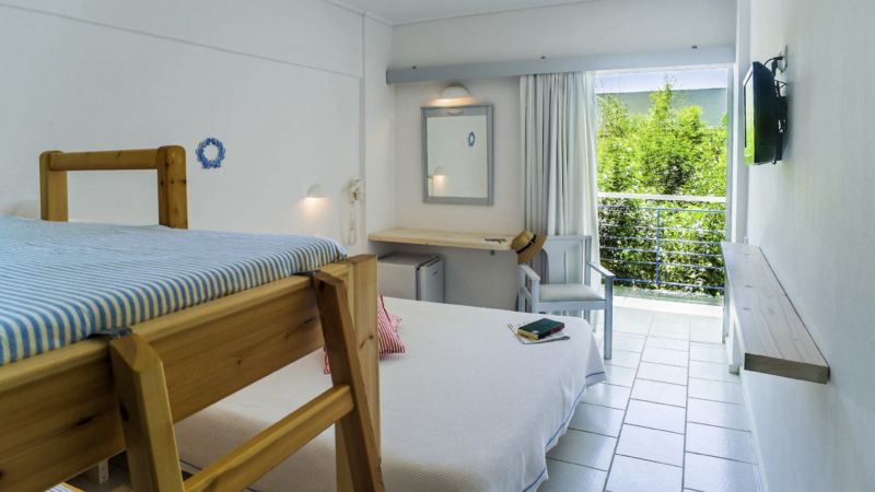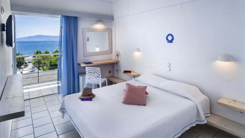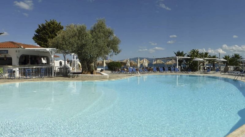 Частный песчаный пляж, сады, неповторимые виды. Отель состоит из центрального здания и 6 двухэтажных. Выбор комфортабельных номеров, ресторан, таверна у моря, 3 бара, бассейн, интернет, фитнес-центр, услуги для детей, спорт и развлекательные программы. Подойдет для комфортного семейного отдыха.