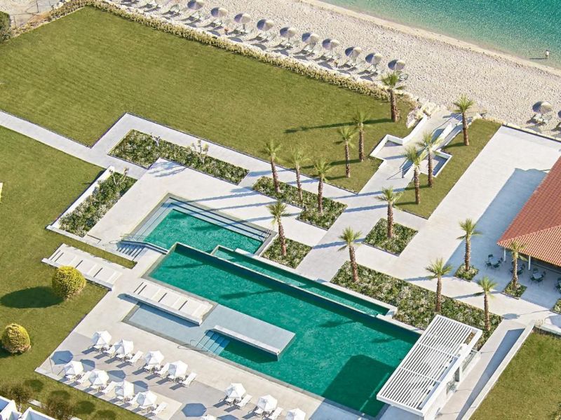 В поселке Ханиоти, в 95 км от аэропорта г. Салоники.