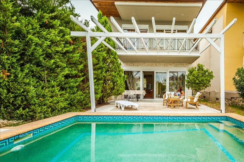 Всего 10 вилл (~120 кв.м) + вспомогательное помещение в цокольном этаже (60 кв.м). Просторные 2-х этажные виллы с садиком и индивидуальным бассейном.