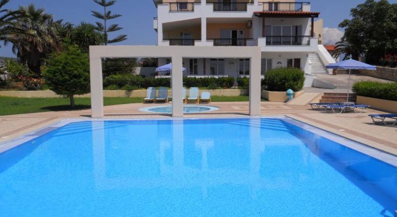 Северное побережье осторова, в деревушке Скалета, в 70 км от международного аэропорта г. Ираклион и в 82 км от аэропорта города Ханья.