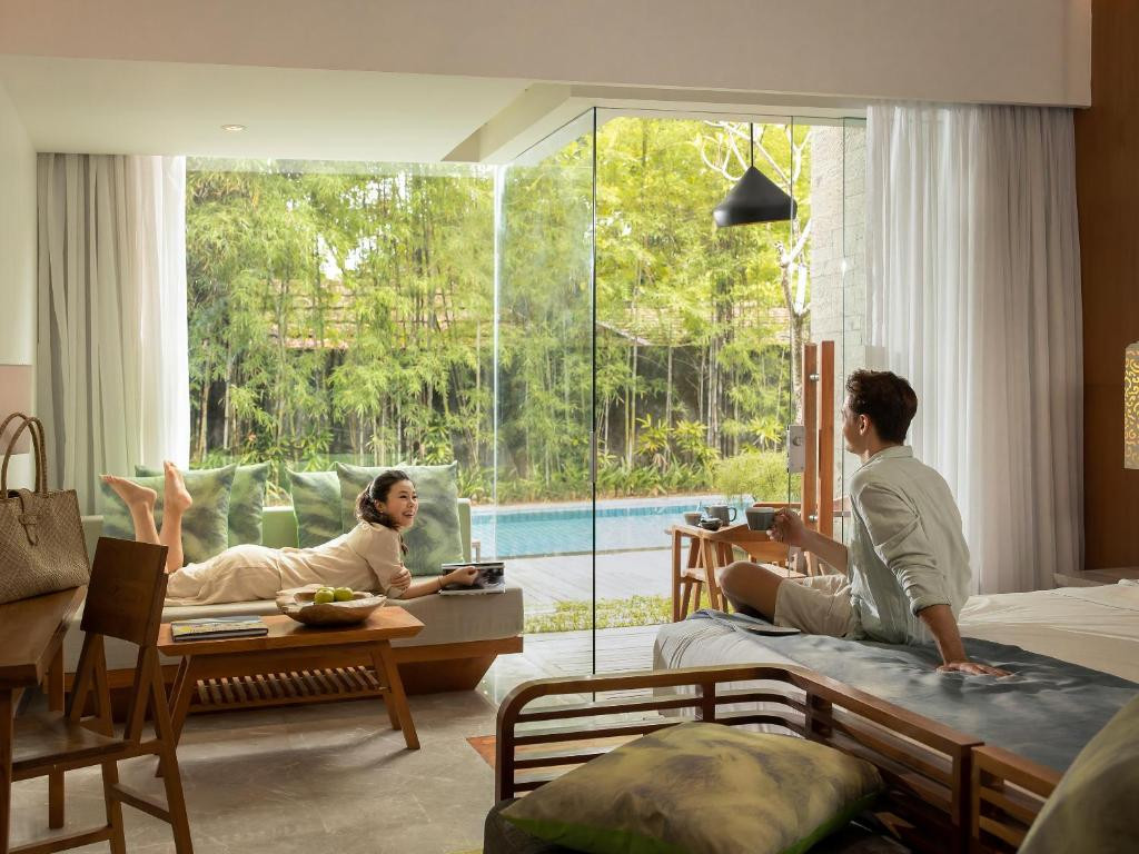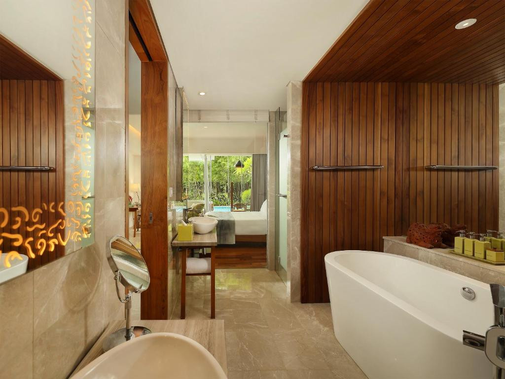 В 15 км от международного аэропорта Нгурах-Рай (Денпасар), на самом берегу океана.