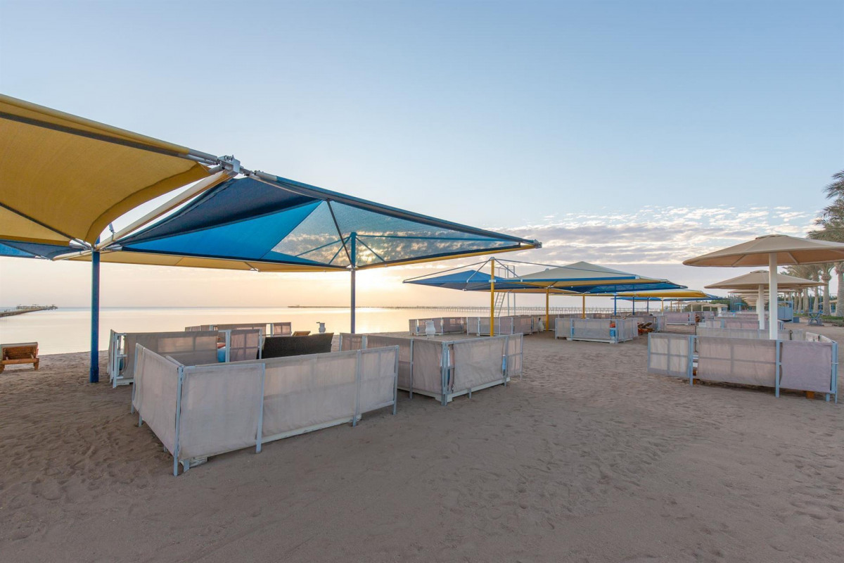 В Египте отдыхала впервые , не с чем сравнивать, но вот мои наблюдения: отель большой ,чистый , номера просторные, нас заселили почему -то в 3-х местный номер с видом на бассейн (не доплачивали ), территория огромная, ухоженная, есть небольшой аквапарк для взрослых , для детей , много бассейнов, вода в них соответственно нагревается , если захотите нырнуть в пекло, чтоб охладится , не поможет, их чистят , запаха хлорки нет, работают до 18:00! Еды в принципе много, она разнообразная , есть 6 ресторанов, больше всех понравился итальянский и рыбный , из фруктов было очень мало арбуза , дыни, манго не было совсем ! Сладости понравились ! Алкоголь не пью, поэтому нечего комментировать ! Персонал приветливый , вежливый , улыбчивый , за чаевые вас еще и запомнят, будут обслуживать как в ресторане ) Номер убирали каждый день , независимо от оставленных чаевых , но мы ему всегда оставляли). Нооооо…. Моря как такового нет! Мелководие! Так как отель огромный , нам чтобы дойти до берега (это зависит от корпуса , куда вас заселят ) надо было пройти 300-400 метров еще по пирсу метров 700-800! Это огромный минус , особенно когда возвращаешься с моря ! Получается точно не 1 береговая линия ! В море также можно купаться до 18:00! В целом я в восторге от красного моря! Еще вернусь !