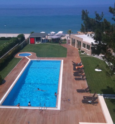 П-ов Кассандра, пос. Полихроно, в 4 км от п. Каллифея и в 4 км от пос. Ханьоти, в 75 км от аэропорта «Македония» г. Салоники. Построен в 2001 году, обновлен в 2009 г.