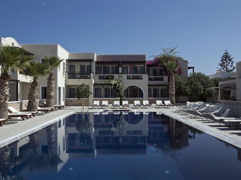 Небольшой отель построен в традиционном островном стиле рядом с популярным песчаным пляжем Камари. Состоит из двухэтажных зданий, расположенных на уютной территории с большим бассейном и пальмами. Просторные номера оформлены в современном стиле. Здесь хороший сервис и спокойная домашняя атмосфера. Недалеко от отеля вы найдете множество греческих таверн, баров и магазинчиков.