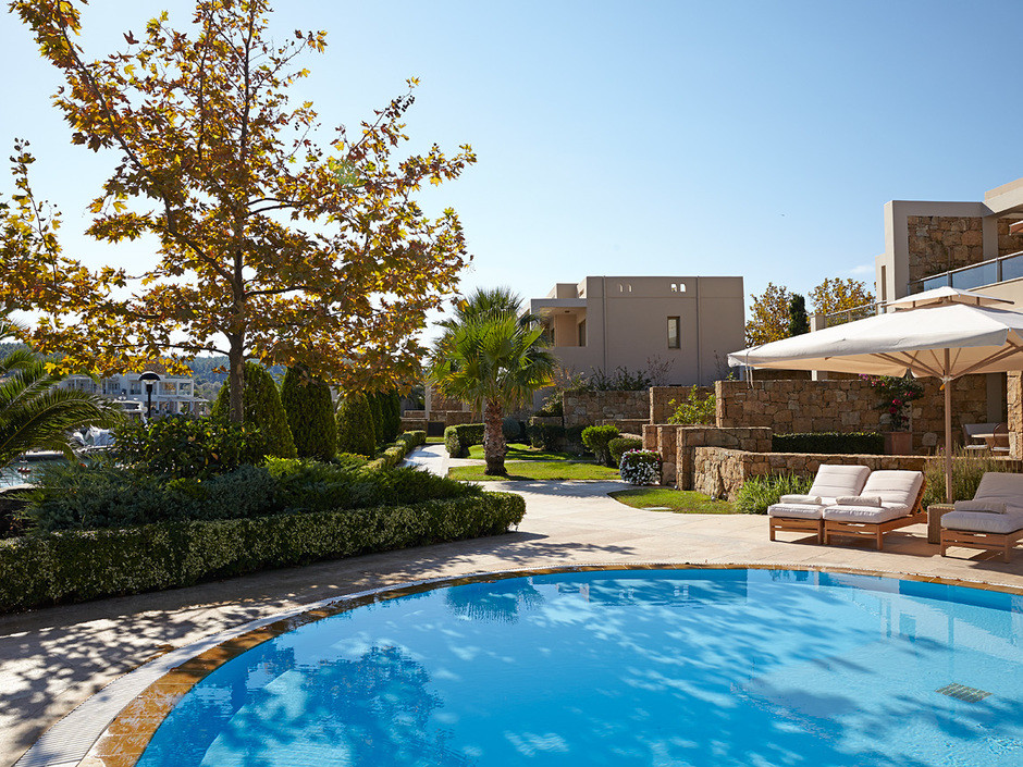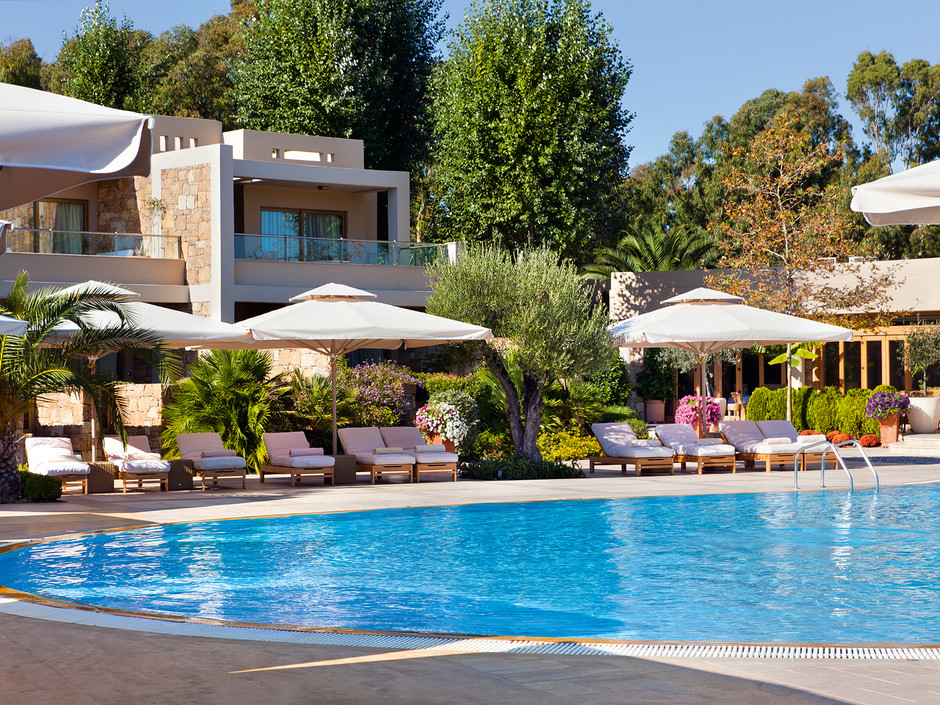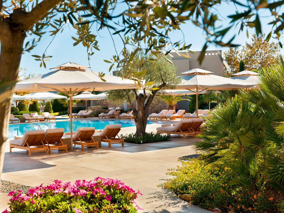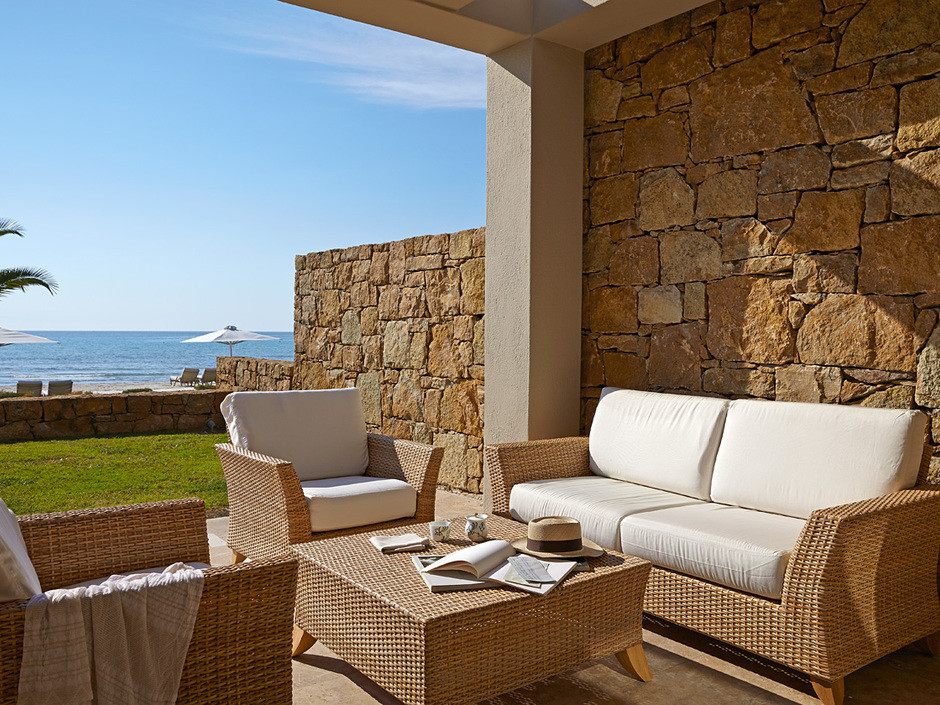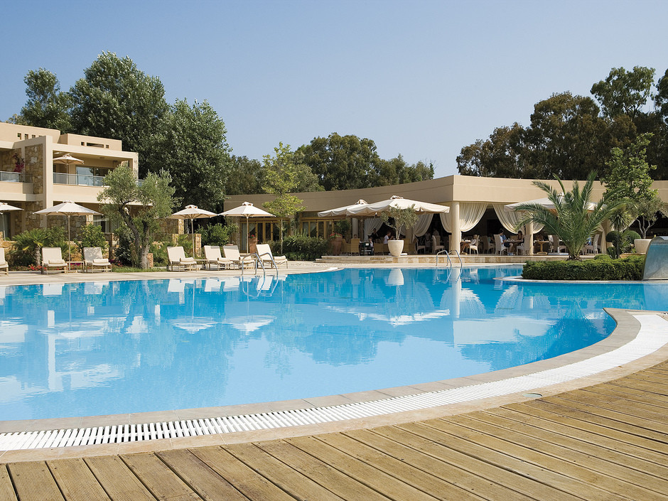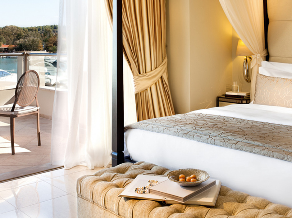 На западном побережье полуострова Кассандра, в 10 км от Неа-Фокиа, в 80 км от аэропорта г. Салоники, на берегу моря.