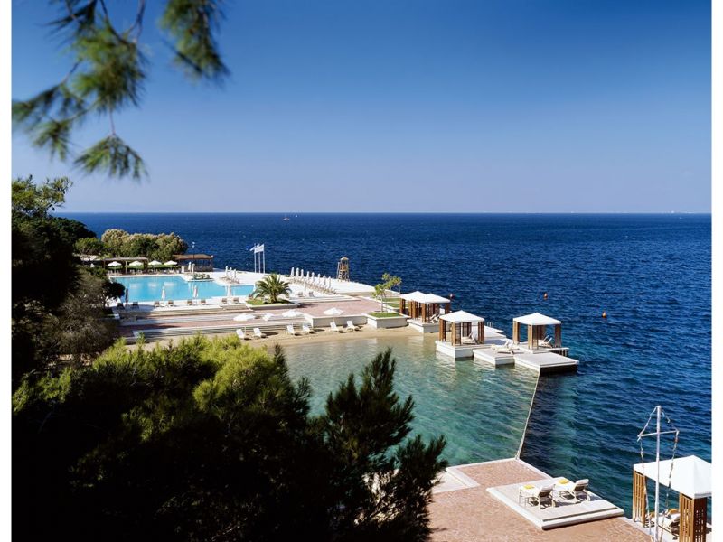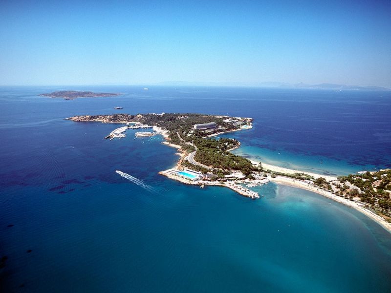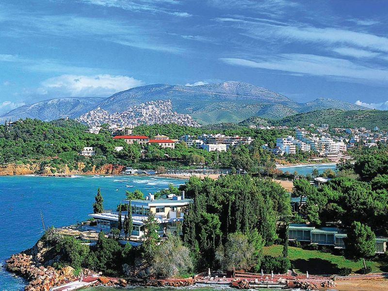 В 25 км от аэропорта г. Афины, в 20 км от центра г. Афины, на полуострове Вулиагмени, на берегу моря.