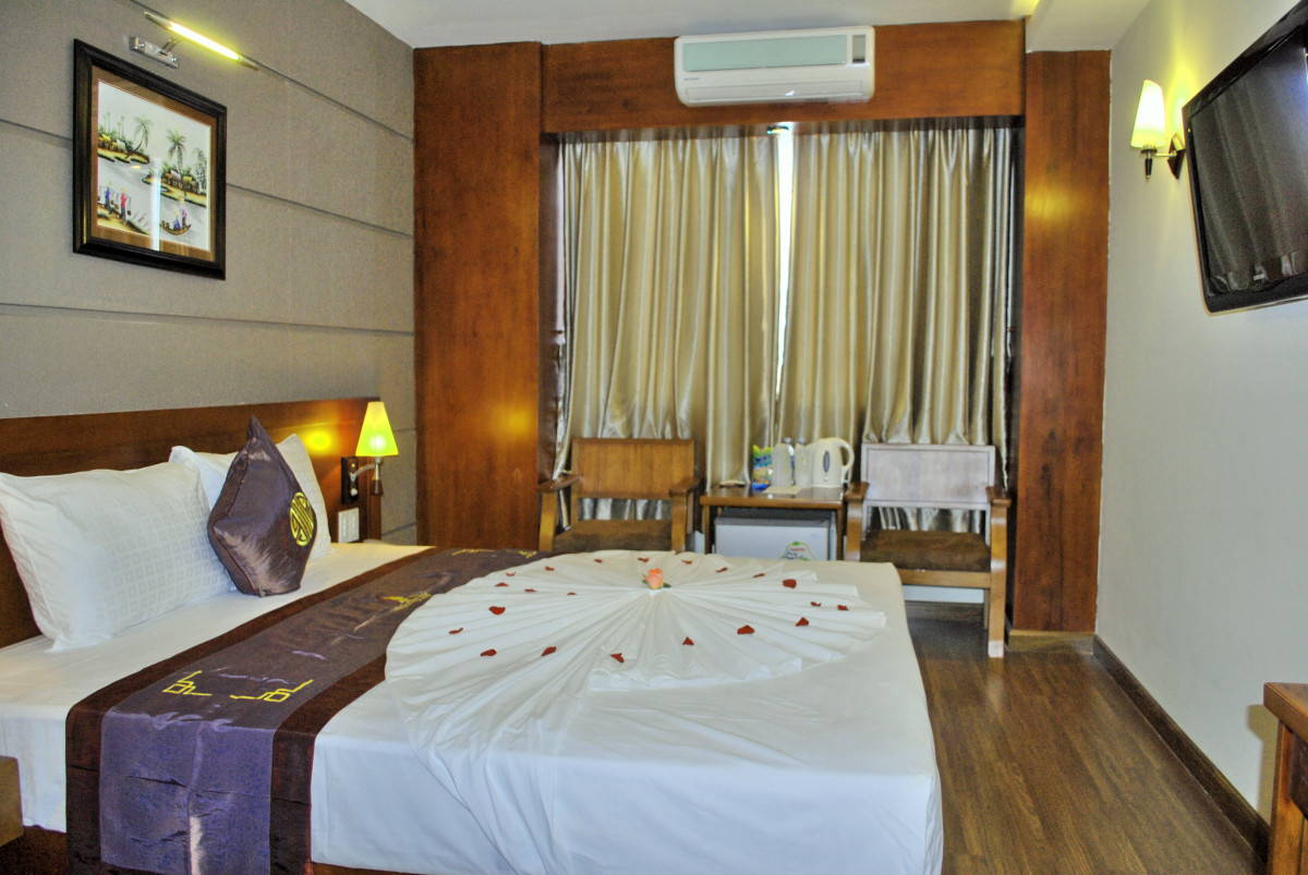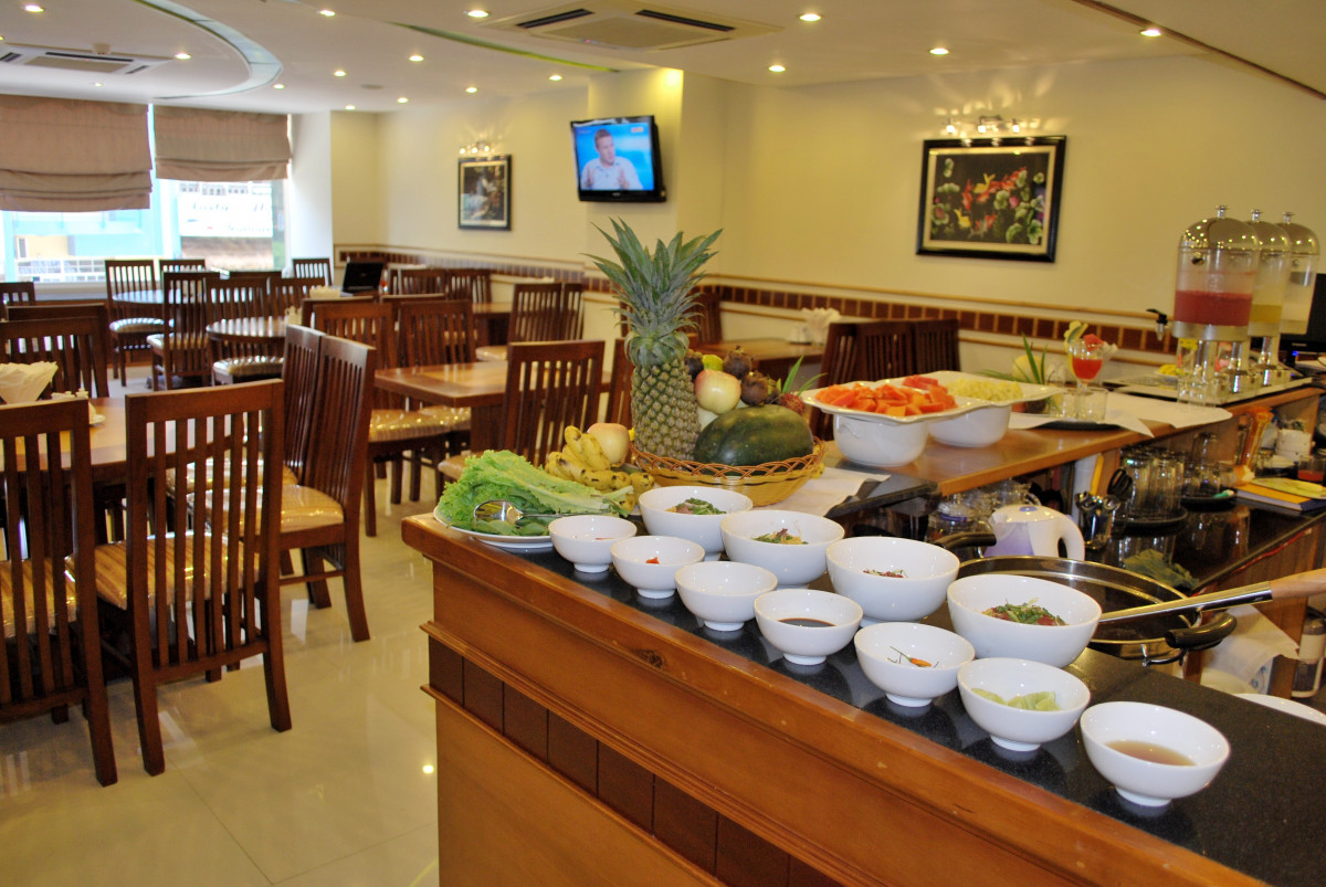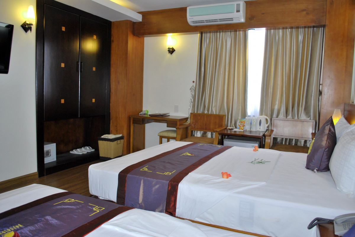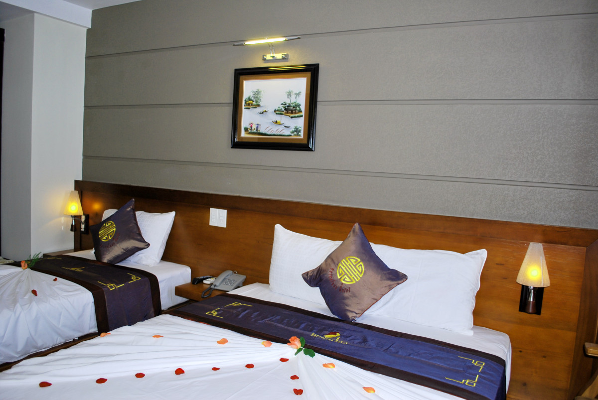 Только вернулись из Вьетнама. Прекрасная страна, А Нячанг прекрасный туристический город. Отель очень понравился. Выбирали его по отзывам и не прогадали. Заселили сразу, очень приветливый и отзывчивый персонал. Дали памятку, где написано проверьте сразу же все, что должно иметься в номере и исправность. Что мы и сделали. В номер докладывают шампунь, гель для душа, зубную щетку с пастой, мыло, станок, шапочку для душа. по два полотенца. Есть чайник, фен, кофе одноразовый, и две бутылки воды. При проверке выяснилось, что не работает кондиционер и разбита бутылочка для мыла. Все тут же заменили и отремонтировали. Моментально. Полотенце для пляжа выдают на ресепшене, тут же меняют валюту. Вай фай отличный. Завтраки разнообразные, блюда менялись каждый день, фрукты, чай кофе, соки, овощи мясные блюда рис и вермишель, сыр ветчина, масло сливочное, багет.. В номерах убирались чисто. Воровства не заметили, в вещах ни кто не копался. Знакомые из другого отеля рассказывали такие страхи. В Барселоне, слава Богу такого не было. А что еще нужно туристу, чтобы хорошо отдохнуть. И самое главное, в отеле отличный бассейн на крыше. Любили ходить туда вечером. Небо звездное, городской шум, а ты релаксируешь после бурного дня в бассейне. Если вернемся в Нячанг, то только в этот отель.