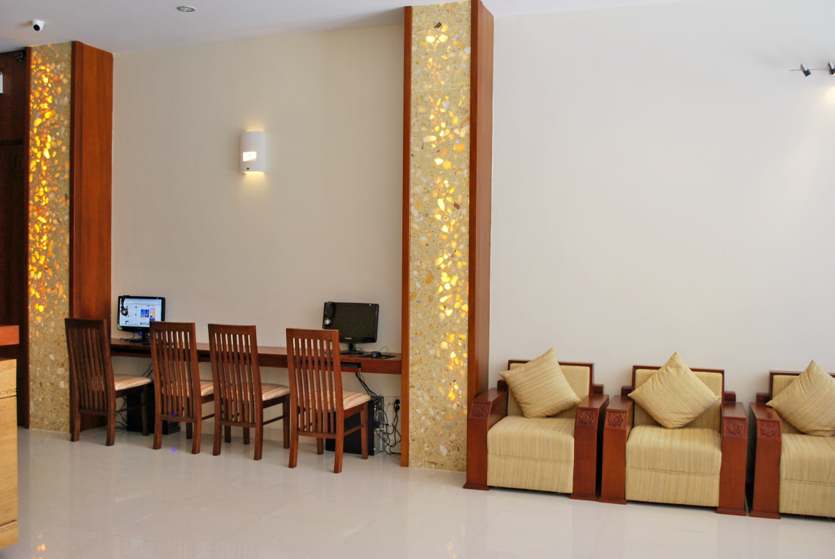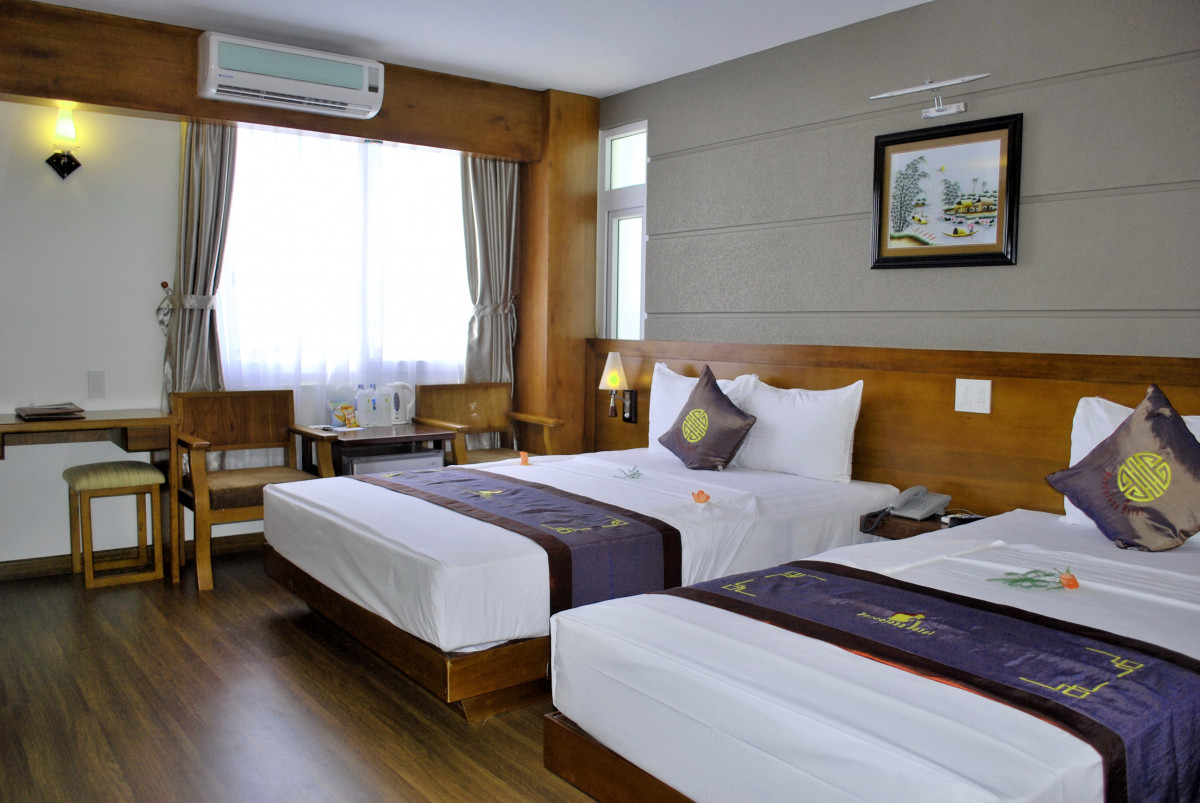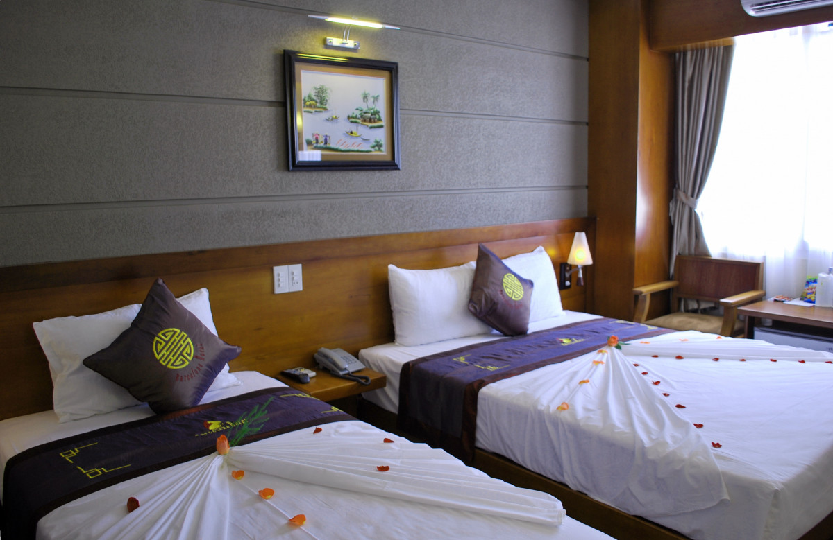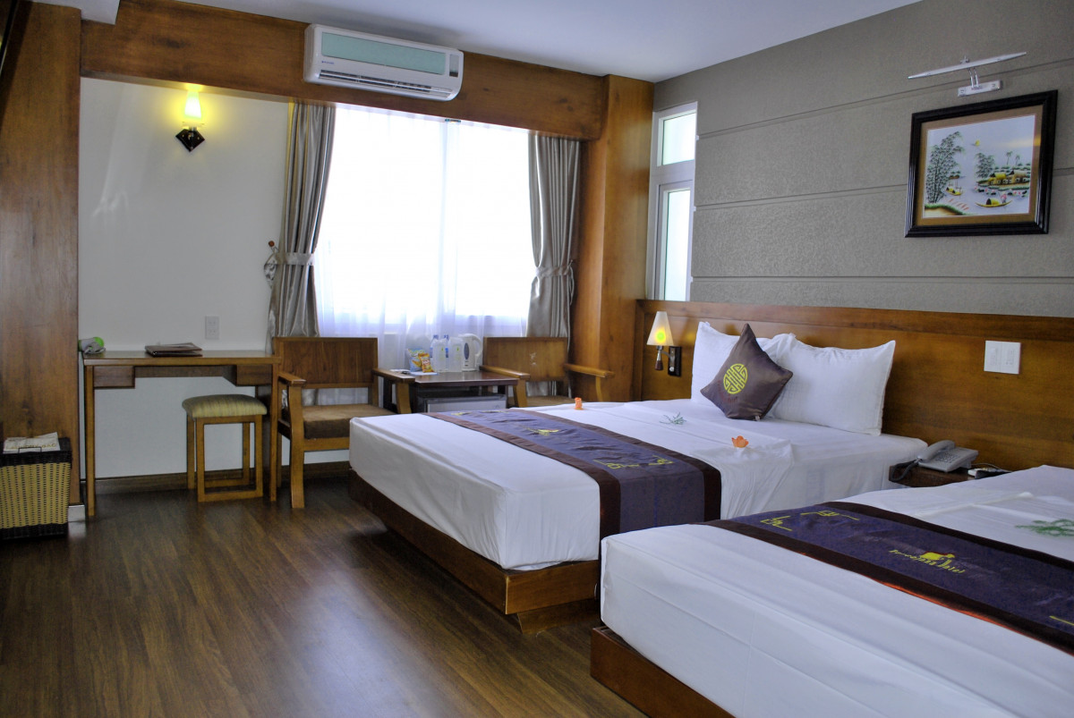 Только вернулись из Вьетнама. Прекрасная страна, А Нячанг прекрасный туристический город. Отель очень понравился. Выбирали его по отзывам и не прогадали. Заселили сразу, очень приветливый и отзывчивый персонал. Дали памятку, где написано проверьте сразу же все, что должно иметься в номере и исправность. Что мы и сделали. В номер докладывают шампунь, гель для душа, зубную щетку с пастой, мыло, станок, шапочку для душа. по два полотенца. Есть чайник, фен, кофе одноразовый, и две бутылки воды. При проверке выяснилось, что не работает кондиционер и разбита бутылочка для мыла. Все тут же заменили и отремонтировали. Моментально. Полотенце для пляжа выдают на ресепшене, тут же меняют валюту. Вай фай отличный. Завтраки разнообразные, блюда менялись каждый день, фрукты, чай кофе, соки, овощи мясные блюда рис и вермишель, сыр ветчина, масло сливочное, багет.. В номерах убирались чисто. Воровства не заметили, в вещах ни кто не копался. Знакомые из другого отеля рассказывали такие страхи. В Барселоне, слава Богу такого не было. А что еще нужно туристу, чтобы хорошо отдохнуть. И самое главное, в отеле отличный бассейн на крыше. Любили ходить туда вечером. Небо звездное, городской шум, а ты релаксируешь после бурного дня в бассейне. Если вернемся в Нячанг, то только в этот отель.