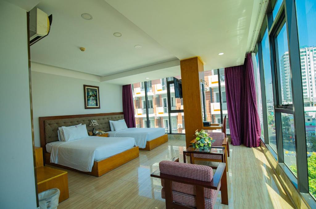 Здравствуйте. Совсем недавно вернулись из Вьетнама. Очень понравилось. Люди (вьетнамцы) очень добрые, никаких чаевых не просят, не за уборку номеров, не за поднятие багажа до номера... Только в кафе не много (и то по своей инициативе) оставляли. Завтраки -неплохие. Можно выбрать для себя подходящую еду, особенно если по раньше прийти. А так, питались везде. Но на день 6 ой день остановились на Кафе "Костя" это от отеля в переулок -направо свернуть, чуть пройти и будет это кафе. Средний чек на двоих 500 рублей с выпивкой. Ели роллы в пивоварнях... вкусно . пиво тоже старались пить в пивоварнях. "Луизиана" и "Панкофф"... все они не далеко от отеля. Возле пивоварни "Панкофф" пекут классные блинчики. Днем русская девочка, вечером -вьетнамка. Море от отеля в 5 минутах ходьбы. Отель в самом сердце развлечений, всё необходимое в шаговой доступности. Отель из 2 ух корпусов. 1 корпус-7 этажей, 2 корпус 9 этажей. Во втором корпусе на крыше бассейн и отличный вид на море...Приборка в номерах - никакая. Полотенце меняют исправно. Воду ставят, кофе и чай... помыть пол,протереть пыль - этого не делали ни разу. Постельное, если скинешь на пол-поменяют. Что касается гида.. и экскурсий. Гид отельный была Настя. Навязывала экскурсии... В пегасе они дороже, чем на улице... Сначала взяли однодневную экскурсию в Даллат от Пегаса. Прокатали нас весь день, рассказали всё в автобусе, а потом иди сам смотри, и додумывай что и к чему здесь означает...Завезли на дегустацию кофе,чая,какао.. Сплошное разводилово...Всё что они вам будут предлагать-на рынке дешевле... Также, пегас советует клуб zuma. Коктейли там дорогущие, все гиды там отдыхают... Сходите обязательно в клуб он на крыше отеля "Либерти", классный вид,приятная атмосфера, коктейли дешевле,чем в zume. После Даллата мы брали экскурсии на улице у Андрея. Это проходишь ночной рынок, дорогу переходишь, и первая палатка. Всё прямо. Андрей живет во Вьетнаме давно, подскажет и покажет на карте-где можно деньги снять без комиссии . Где какие вкусняшки подешевле поесть. Отличный мужчина. Гида нам дали чудесного-Геннадий - он вьетнамец. Добрый,умный, с усиками мужчина. Просите его на экскурсии у Андрея. Мы остались довольны.. Не то что Пегасовцы... Но,каждому своё конечно же. Цены по сравнению с нашими, ниже только на их местное пиво saigon - 35 руб. ром - 180 руб. Кофе - 200 руб. 500 гр. А всё что касается еды,одежды,сувениров-всё относительно точно также как и у нас в кафе, клубах и магазинах. Вроде всё-приятного отдыха.