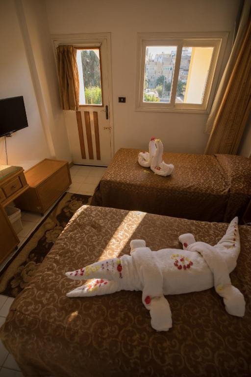 Была здесь в феврале. И так, по пунктам: 1. Не знаю,кто в отзывах пишет, что интернета нет. Ловил и в холле, и у бассейна, и в ресторане, и у меня в номере ( номер был около бассейна) , и частично на пляже. Вайфай бесплатный, если что. Слабоватый, да. Но его хватало для сообщений, тиктока ,инсты, и чтобы фотки отправить. 2. Приехали поздно ночью, сразу предложили поесть. Наложили огромные порции мяса, риса, салата, были апельсины, десерты. Спасибо! Хотя напомню, вас не обязаны кормить. От тройки я такого не ожидала. Очень приятно! 3. Номера. Честно, ужас. Хоть я и приезжаю на море чтобы поплавать и поездить на экскурсии, но такого я не ожидала. Не обращаю внимания на обдертую и закрашенную кое-как штукатурку на стенах, но ... Немытый унитаз весь в пятнах! Хоть его можно было бы помыть? Выглядит отвратительно и неизвестно кто вообще на нем сидел и какие болячки оставил. Уборка очень плохая !! Ладно, не гордая, взяла туалетную бумагу и сама протёрла этот унитаз. Но постельное хоть чистое и слава богу. Уборка очень хромает, это большой минус. И геля для душа, шампуня в номере не было. Это плохо. Было только жидкое мыло для рук. 4. Питание -мяско, рыбка, супы, рис, десерты, фрукты ( дыня и апельсины), овощи, салаты, булочки , курочка, запечённый картофель, круассаны с шоколадом, выпечка, пицца, омлет и тд. Выбор небольшой, но всего хватало и голодной не ходила. Иногда наедалась так, что было тяжело дышать вкусно, правда! В столовой есть водичка, сок, чай, можно попросить налить колу / фанту. Какой-то алкоголь есть, но про него ничего не скажу- я не пью. 5. Территория и пляж - сад красивый, ухоженный. На территории много пальм. Сделала много красивых фоток. Пляж чистый, лежаков много. Для купания обязательно взять обувь специальную. Туалеты общие и на пляже и в холле, оба просторные, так что если у вас ранний приезд или поздний выезд, можно спокойно переодеться там и пойти поплавать/позагорать. Так же из плюсов то,что когда едешь на экскурсии, на входе охранник записывает твой номер комнаты и номера машины. За безопасностью смотрят плюс металлодетектор на входе. Из большого плюса ещё : выезд из номера как всегда в 12:00, а выезд в аэропорт у меня был аж в 20:30. Голодной не оставили, разрешили пообедать, хотя браслет срезали. Такое встретишь не в каждом отеле. В общем могу сказать, это нормальная тройка. Из минусов - только уборка и отсутствие в номере шампуня/геля для душа. А так, я хорошо кушала, покупалась, вайфай бесплатный - доплачивать не надо, отель на первой линии. Съездила на экскурсии, получился хороший отдых. Также на пляже есть два магазина - один с сувенирами ( магниты за 2$, брелки 1$, статуэтки 3-4$) , и второй с маслами, сухими духами и тд . Там очень хороший продавец, угощает после покупок чаем/кофе. Было приятно с ним пообщаться, и вообще душевный человек. Ниже прилагаю что я брала покушать, для полного понимания картины . И да, за неделю ни разу не отравилась, здесь с питанием все хорошо. Короче если рассматривать бюджетный отдых, вам сюда. Я сама не зарабатываю столько,чтобы позволить себе пятизвёздочный отель, поэтому приходится выбирать бюджетные варианты, но я была почти всем довольна.