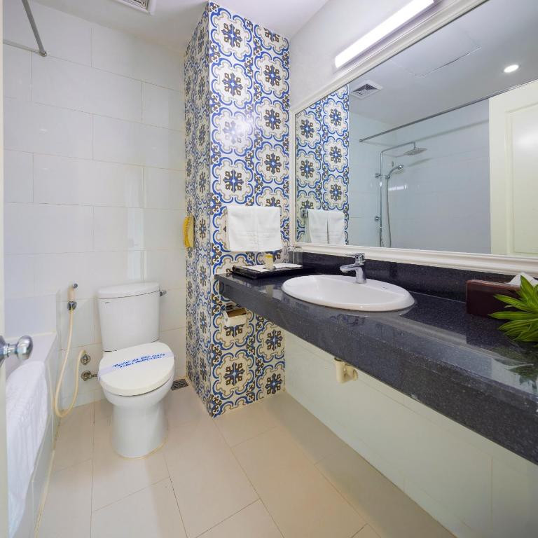 Отдыхали здесь в январе-феврале 2019 года. Заселялись с друзьями в два номера на 7 этаже, окна выходили на "лотос". Шума от строек не было. Отель старого года постройки, в номерах мебель не современная. НО! Всё было чистенько, уборка и смена ванно/банных принадлежностей каждый день. Кровати большие, балкончик со столиком и креслами, сейф, халаты, фен, сантехника, кондёр - всё исправное. На завтраки брали почти всегда одно и тоже: яичница, суп фо, тосты с зеленью. Свежий сок, кофе. Готовят вкусно. Обеденная зона просторная, хоть китайцев и было много - они не мешали.