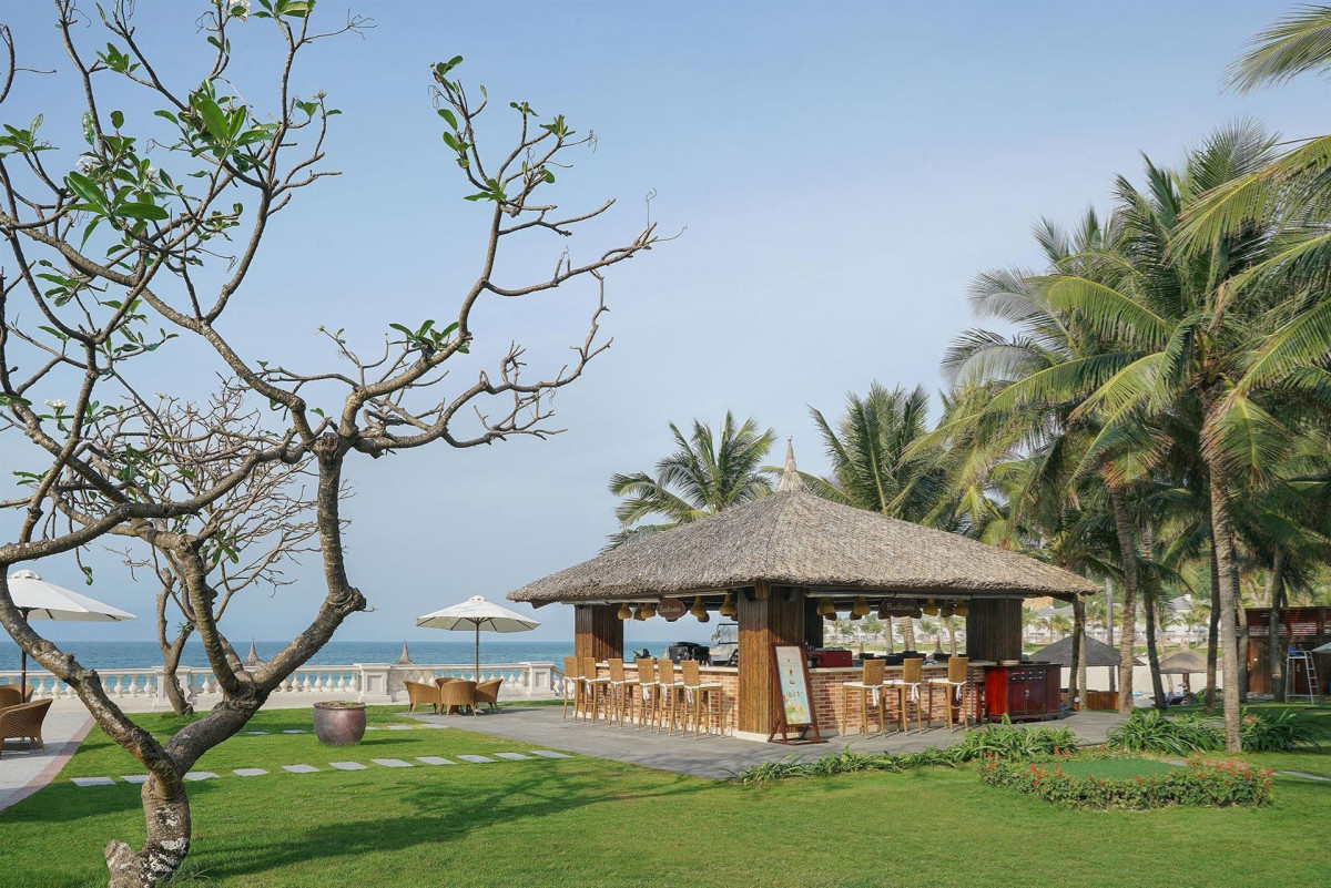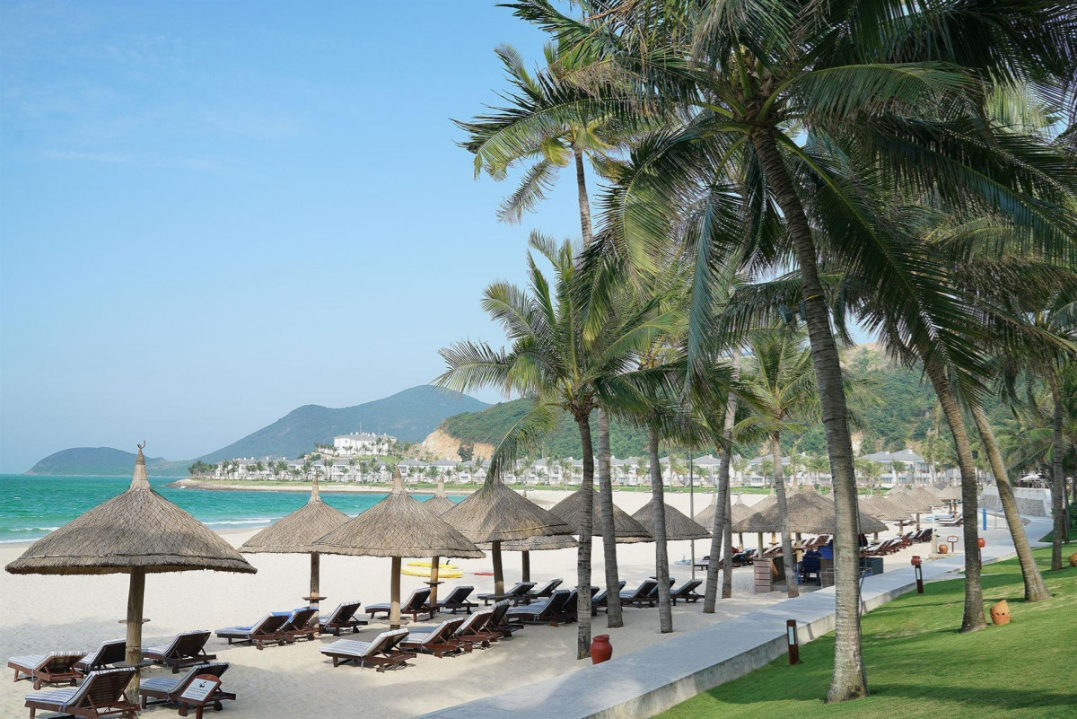 Чудесное место для уединённого спокойного отдыха. Сам отель немного уставший, но все довольно чисто, немного запах сырости присутствует, но это из за влажности повышенной. Уборка номеров на четверочку, иногда забывали, убирали поверхностно. Водичка всегда была, даже иногда больше двух ставили. В холодильнике приветственные газировка и орешки. Кровать удобная огромная, матрасы отличные, высыпались потрясающе. В номере тапки сланцы для пляжа, домашние тапки одноразки, халаты и все для гигиены в ванной в достаточном количестве. Уходя из номера лучше закрывать балкон ибо может зайти скворец и оставить подарочек. По питанию: фо бо только на завтрак почему то давали, и мисо суп, всякое из яиц, колбасок, сендвичи и прочее для завтрака, соки арбуз, ананас гуава, чаи кофеи, фрукты овощи сыры и прочее, в общем довольно сытно и на любой вкус. На обед уже были мясо рыба, супы разные другие, салаты. Фрукты десерты тоже. Но соков не было. Только чай и кофе. На ужин к тому что было на обед добавлялся гриль на улице с разными мясами и овощами и рыбой с морепродуктами. Были большие креветки, ракушки разные, улитки, рыба и белая и красная. Сашими и роллы. Кстати даже борщ был. Потрясающе готовят пасту с разными соусами, пармезаном и прочим. Мороженное на ужин это отдельное удовольствие, такое вкусное не ела никогда. Фрукты: манго, арбуз, гуава, цитрусовые, яблоки и бананы, рамбутан, папайя, дыня, в общем очень вкусно и разнообразно. Помимо этого были пара баров у бассейна где помимо напитков можно было взять покушать, причем не только снеки но и салатики всякие. На каждый день свое меню по еде на баре. Алкоголь на баре местный, ром понравился, люди так же активно пили пиво. Территория. Бассейн поделён на зоны для детей и поглубже для взрослых. Лежаков хватало всегда, полотенца рядом выдавали сколько хочешь с утра до ночи. Пляж рядом. Чистый, постоянно ходил мужичок с граблями и чистил песочек от малейшего мусора. Лежаков на пляже впринципе тоже хватало но если будет полное заселение то будет мало. БЕЗОПАСНО! Я оставляла телефон на лежаке спокойно, именно тут на острове воровства нет, в отличии от материка. Садовники постоянно снимали кокосы с пальм и листья если те пожелтели. Много деревьев и цветов, фруктовых деревьев, пальм, все ухоженное и красивое. Много скворцов летали, кушают картошку фри и попкорн, фрукты не стали брать. Какие то мероприятия проводят возможно но мы не особо заметили, в какие то дни фильмы по вечерам, возможно что то для детей. Но лайтово и не мешает остальным. Территория острова вообще большая довольно и можно гулять не только на территории своего отеля, плюс парк развлечений винперл (ну так на троечку если для взрослых, а с детьми классно) если хочется больше экшена то на материк на канатке или катере можно бесплатно кататься сколько хочешь. Персонал очень милый и дружелюбный, английский знают большинство, но не все хорошо, но они на столько сильно хотят тебе помочь что включат переводчик и будут переводить на русский, так что очень простая коммуникация с ними. Спокойно с любыми вопросами подходите, все подскажут и решат. В общем рекомендую к посещению тем кто хочет приятно отдохнуть без лишнего шума, в безопасности на чистом пляже без посторонних людей, с потрясающе вкусной кухней, свежими морепродуктами и фруктами.
