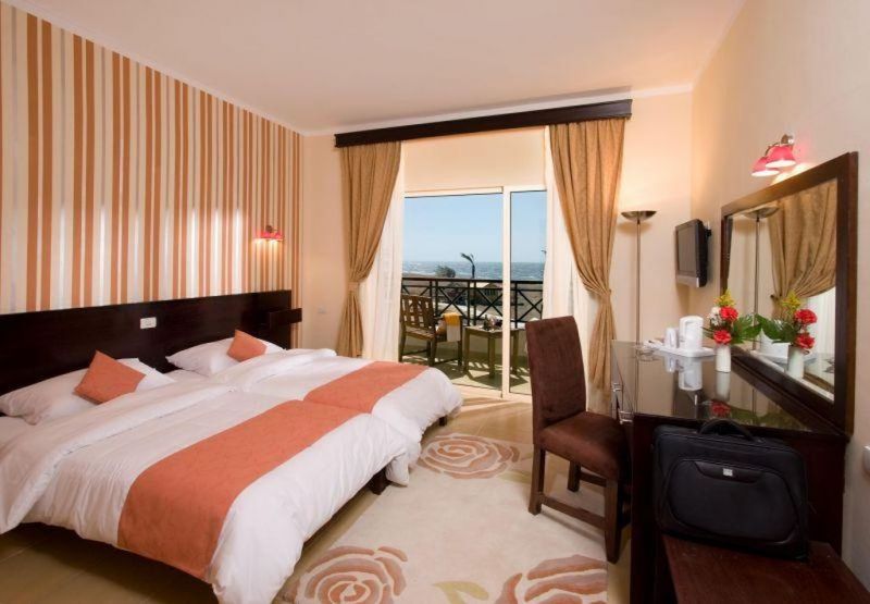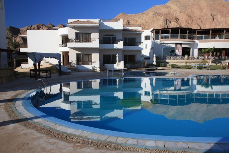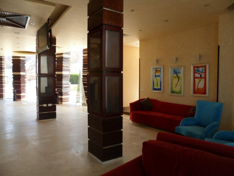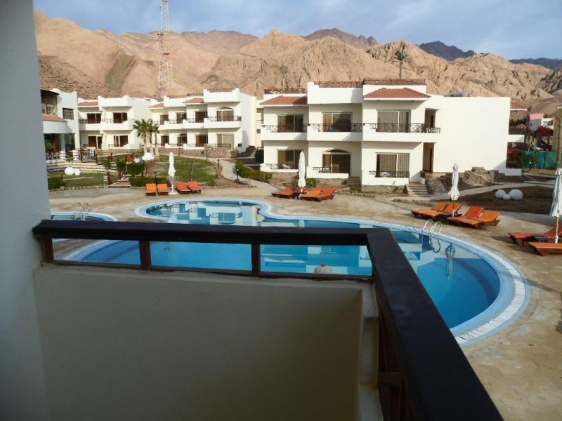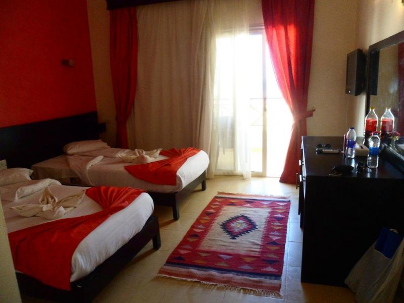 Добрый день! Отдыхали вдвоем с мужем в этом отеле 15-22 октября. Тур покупали за неделю до вылета. Пегас. С вылетом из Нижнего Новгорода получилось 50 тыс на двоих за 8 дней/7 ночей. (замечу, что тот же тут из Москвы стоил на 4 тыс за двоих дешевле всего-то, поэтому полетели из НН). Безусловно, перед покупкой мы изучили все отзывы и понимали куда и зачем мы едем. В данном ценовом диапазоне мы смотрели Шарм, даже уже присмотрели вариант, но в самый последний момент вылетел в поиске Дахаб. Как вы знаете, Египет славится несколькими курортными зонами, поэтому, планируя свой отдых самостоятельно или же полагаясь на подбор от сотрудника турфирмы, нужно понимать, а что вы хотите от Вашего отдыха? Мы ехали за морем, солнцем, тюленным отдыхом. Нам не нужны были дискотеки и шум, но мы хотели увидеть красное море с его обитателями. Хургада отпала сразу, водный мир там не сильно богат. В Шарме нашлись отели второй линии и сносным морем по этой цене, но несколько лучшим сервисом. Поэтому выбрано небольшое курортное место в часе езды от Шарма - Дахаб - рай для дайвинга, виндсерфинга, кайтсерфинга, активного отдыха. Сервис. Прилетели мы во второй половине дня в аэропорт Шарма, откуда нас забрали и до отеля мы ехали 75 мин. Быстро зарегистрировали, дали ключи от номера, мы расположились и успели поужинать. Нужно отметить, что номера хорошие, просторные,кондиционер работает, но отелю требуется ремонт (сантехника старая), полотенца тоже не белые, пляжные полотенца выцвели, лежаки многие сломаны. Об этом опять же писали в каждом отзыве, мы были к этому готовы. В нашем номере не работал кран в раковине, мы поменяли номер на другой. Кстати, соседний отель Тропитель по отзывам интереснее, но ценник по нашему запросу отличался на 10 тыс с носа, это тоже нужно учесть! Люди. С кем Вы встретитесь в отеле, так это с Лолой - это отельный гид, человек, к которому нужно обратиться по любому вопросу и проблемы не будет) (я читала в отзывах, что до этого была Дина, да, действительно, с октября в отеле новый управляющий и гид). Мы познакомились с самим управляющим - мистер Халид. Играли с ним в нарды. Всегда интересовался, все ли у нас хорошо. В баре Вы встретите двух Мухамедов - постарше и помладше, если вы будете улыбаться и вести себя дружелюбно, они Вам всегда нальют лучший бокал. Также всем известные браться Вася и Джимми - общаться с ними легко, они хорошо понимают по-русски, всегда готовы помочь. Кстати, экскурсии от туроператора не берите, лучше взять в отеле у братьев. Еда. Как уже отметили многие, не слишком разнообразная. Это факт. Завтрак - яйца в разных жанрах, брынза или салат с брынзой (другой сыр, как и колбасу местную есть в принципе невозможно), овощи (помидора,огурцы, капуста, морковь), всегда были блинчики (вкусные, многие писали об этом, с разными вареньями), выпечка, кофе/чай/молоко (лучше взять с собой, самое дешево и далеко не для гурманов). Пара моментов. Из питья был разбавленный юпи или каркаде - пить невозможно. Вода - в номере нет. есть кулер на рецепции - возьмете бутылку, можно наливать. Пить ее мы не стали, я чистила зубы и смывала голову, так как в душе вода слегка соленая. Есть при отеле магазин, так вот так продается вода! Обед/ужин - всегда те же самые овощи салатные, всегда кабачки/морковь/горох на пару, тушеные баклажаны, из гарниров - картофель, рис, макароны, из мяса - говядина (оч 