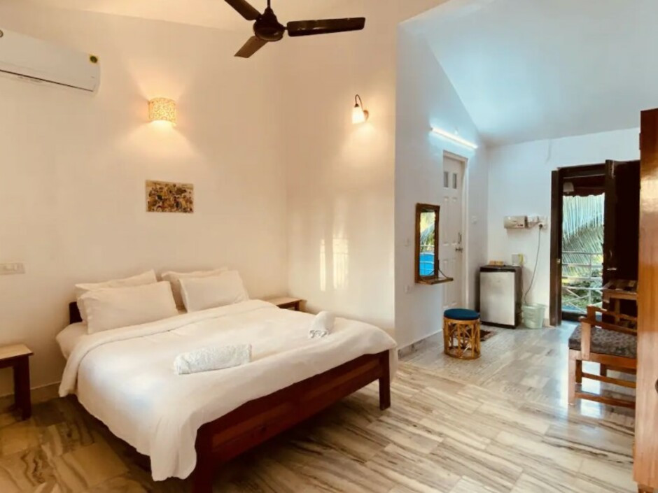 Только близость к морю и больше ничего хорошего. Ненормальная хозяйка этого гестапо хаоса испортила весь отдых. Она хочет с тебя денег за все... и даже больше. Здесь нельзя ничего... НИЧЕГО БЕСПЛАТНО. Спасибо что хоть позволили бесплатно просто проходить к своему номеру. Холодильник 200 рупий в день (очень мини холодильник, туда поместятся только 3 шт литровые бутылки), чайником своим пользоваться 100 рупий день (боюсь представить сколько их чайник в аренду стоит), сейф платный, продукты и напитки свои можно только в номере и под одеялом, чтоб никто не догадался. Если у них купил это, то все пучком, а если идёшь со своим, то следом за тобой бегут и кричат "ноу, ноу, сорри". Никому не советую этот гест хаус, да, уж извините отелем я назвать это не могу. Хозяйка у отеля явная маразматичка...