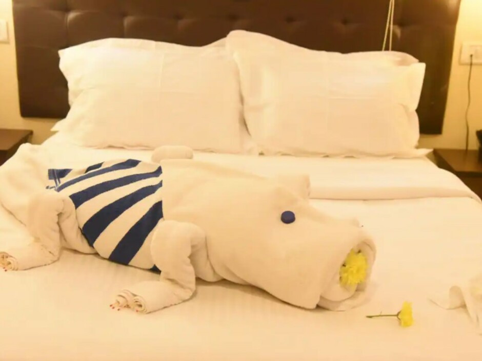 Замечательный отель, находится недалеко от пляжа. (На самом пляже лучше всего уходить левее, там индусов меньше, у шейков их выгоняют из воды "стражи порядка" и купаются белые). Самое тяжелое это после перелёта, ожидание, заселение в номер. В этом отеле нас заселили в 11*00, меня это не сильно смущало ) Пока муж разведал территорию отеля , я спала на мягком диванчике рядом с администрацией отеля. Нам даже разрешили позавтракать перед заселением )) Правда особо никто не приглашал, нужно самим проходить в столовую и уже там ....)) вам предложат покушать ))) . При заселении в номер предложили индусу чаевые пару долларов, так он отказался и предложил нам заплатить ему 10$. Мы были в шоке, но отдали т.к. первый раз были в Индии. В других странах чаевые отдавали меньше и все были довольны. (Как потом узнали, другие совсем без чаевых заезжают)) . Очень порадовал при отеле ресторанчик . Готовят вкусно, недорого (относительно других отелей - проверено!)), обслуживающий персонал очень вежливый и внимательный. Настоящие профессионалы своего дела!!! Анимация: караоке, живая музыка, фокусы - весело). Бассейн в отеле чистый, никаких крыс мы там не видели, как пишут про другие отели. У отеля несколько корпусов. В главный корпус в основном селят более спокойных: англичан и русские семейные пары. (Пока вы находитесь на ресепшен и ждёте заселения, к вам присматриваются, что вы за человек и чего от вас можно ожидать). Шумных заселяют в другие корпуса). В номере не работал кондиционер и не только у нас), но это тоже не смущало, два вентилятора на потолке справлялись со своей задачей изумительно). Мебель и бельё старенькое, но в номерах очень чисто и это радует. Проживали в главном корпусе, поэтому интернет был и в номере, единственное - администрация отеля постоянно меняют пароль от вай фай) Нужно подходить на ресепшен и брать новый пароль (раз в день). При отеле есть охрана, спокойно можно оставлять вещи в номерах. Особо ценное и денежные средства можно оставить в чемодане с кодовым замком. О выборе отеля не пожалели , выбирали,читая отзывы всех отелей. Может и мой отзыв поможет вам с выбором, удачного отдыха!