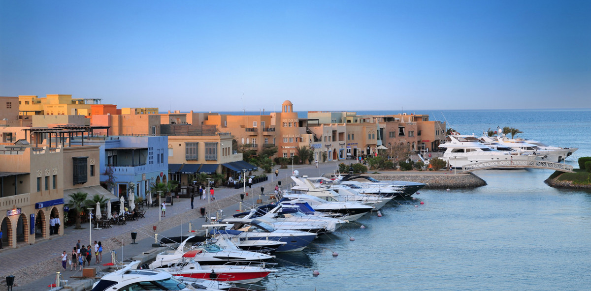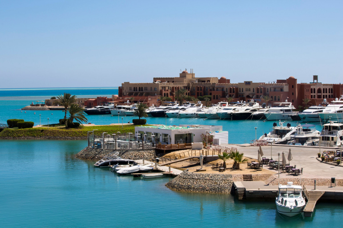 У пристани Абу-Тиг, в 25 км от аэропорта Хургады, в 2 км от центра города Эль Гуна, на второй линии