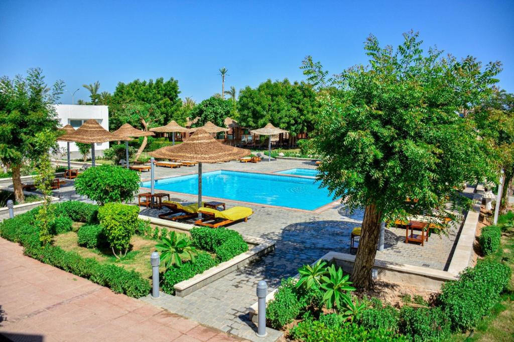 Отдыхали с 5 по 15 октября 2021. Отель полностью соответствует своей 3. Персонал хороший, отзывчивый, фото на сайте реальные. Номера чистые, но требуют косметического ремонта. Постельное белье и полотенца белоснежные. При заселении номер был убран плохо, но сказали администратору и номер убрали, быстро. При чем у нас лежали доллары на видном месте, ничего не взяли. Бассейн чистят не только сверху от листьев, но и плитку на дне. На территории отеля много зелени. Пляж платный 3 доллара, море классное, рыбок очень много, живые кораллы тоже есть, по билету 0,5 воды бесплатно, (у отеля нет своего пляжа). Расстояние до него 500-600 метров. Полотенца пляжные выдают, и меняют по требованию. Еда отличная, нас устроила полностью. Рыбы, курица, мясо почти каждый день. Отдельное спасибо с Урала не скупому бармену Атефу, шефу Мухамеду (Кастеру) и русскоговорящему администратору Надиру. У нас отдых удался.