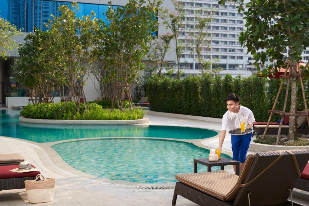 Отель в современном стиле с использованием тайских элементов в интерьере и дизайне. Предлагает размещение в высотном 34-этажном современном здании в центре Бангкока. Уютные просторные номера с отличным видом на город. Напротив находится торговый центр Platinum Fashion Mall. Также всего несколько минут до оживленных рынков, кафе и магазинов, а также достопримечательностей. Гостям клубных номеров и люксов предоставляется эксклюзивный доступ в клуб Siraa с индивидуальным обслуживанием, ежедневным завтраком, напитками и питанием премиум-класса. На территории открыт ресторан, стилизованные под рынок. Тут можно попробовать блюда тайской кухни. Также есть рестораны итальянской и интернациональной кухни. Хороший вариант для туристической или деловой поездки.