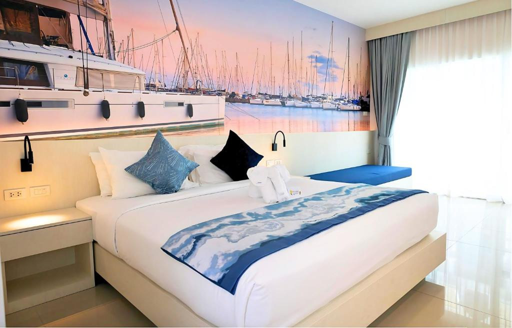 Отдыхали семьёй в этом отеле в конце ноября 10 дней. Отель отличный, номера просторные, болконы большие, убираются хорошо но песок всё равно немного остаётся. За всё время в номере ничего не ломалось и остались очень всем довольны ( что касается номера). Сама территория и локация хорошие , понятно что зелени там практически нет но всегда везде чисто. Сама локация очень удобная всё в шаговой доступности. Так как на Патонге уже не первый раз выбирали из за расположения. Бассейны чистые, постоянно там все убирают и слидят за чистотой, шезлонги были всегда свободные что на 1 этаже что на верху. На крыше с бассеина открывается классный вид на море и можно посмотреть красивейшие закаты. Персоонал отеля впринципе хороший, постоянно улыбаются и хотят всем помочь. Что разочаровало в этом отеле это отношение работников отеля на бассейне. Впервые столкнулись с тем что ничего своего ты не можешь принести на бассеин. Официант сразу же к тебе бежит и требует уйти если ты со своими напитками или едой. В отелях в которых мы были раньше никто даже слово не говорил, иногда даже предлагали пластиковые стаканчики. Купаться после 20.00 конечно же тоже нельзя. Этот момент конечно очень подпортил отдых. А так отель хороший, но мы конечно в него больше не поедем.