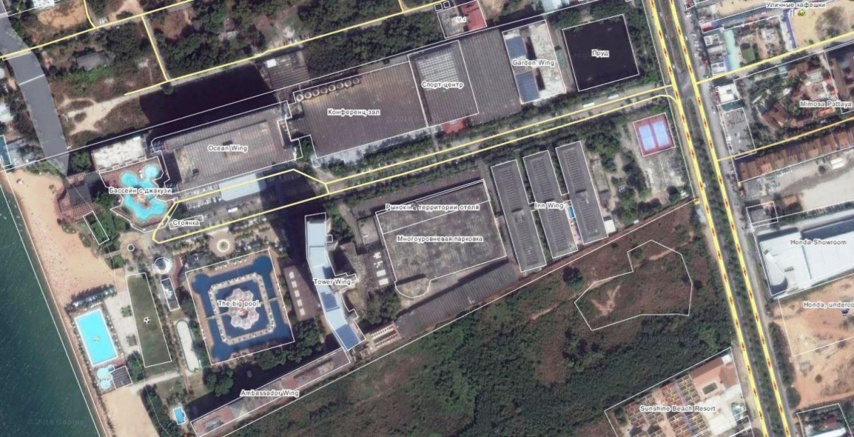 На пляже На-Джомтьен, на первой береговой линии, примерно в 15 минутах езды от центральной части Паттайи.