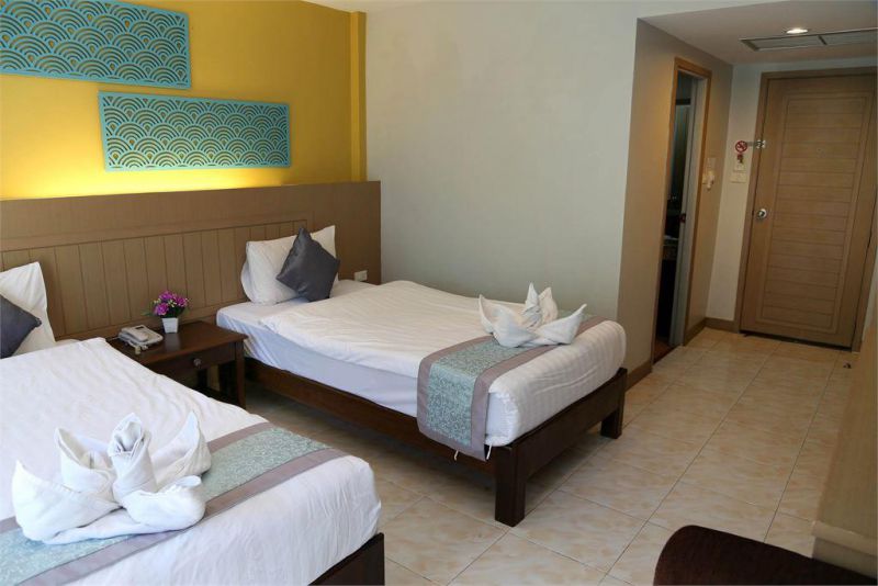 Просторные чистые номера, каждый день уборка, смена полотенец, оставляют две бутылки питьевой воды. В номере есть: бесплатный сейф, холодильник, фен, эл.чайник, даже зонт. Когда идешь на пляж у администратора можно взять пляжное полотенце. Красиво оформленный бассейн с гидромассажем. С родными разговаривали по бесплатному Wi-Fi. Есть два русскоязычных канала. Приветливый персонал, по русски не разговаривают, но с помощью школьного английского и жестов, друг друга понимали, на все просьбы тут-же реагировали. Брали средство от комаров, но ни разу не воспользовались. До моря 20 мин. Движение оживленное, есть и светофоры и "зебры", но если на машинах еще правила соблюдают, то на мото байках ездят как хотят, на "зебрах" если кто пешехода и пропустит, то это не таец. Если направо от отеля пойдешь выйдешь на гипермаркет "джанг цейлон", в цокольном этаже неплохой фудкорт, налево пойдешь-выйдешь на фруктовый рынок и там недалеко русское турбюро (у туроператоров в 2-3 раза экскурсии дороже).