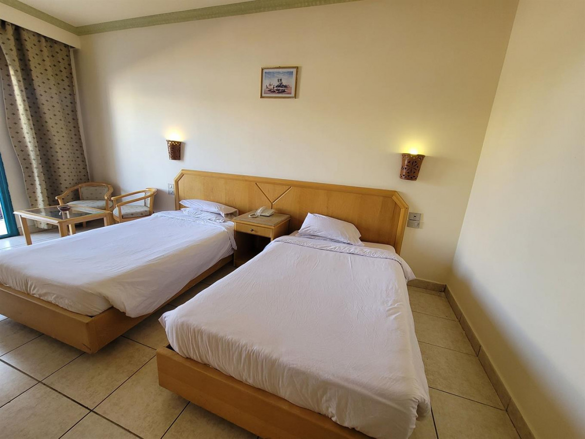Поехали с сыном в Египет впервые. Отговаривали все от выбора данного отеля. Но это был наш 3 отдых в этом году, поэтому денег тратить на отель выше рейтингом мы не стали. Просто хотели посмотреть страну, искупаться в красном море и понять, почему многие в восторге от Египта. От аэропорта отель расположен близко, но пока развозили по другим отелям, прошло почти 2 часа. Приехали к концу ужина. Вещи оставили на рецепшене и пошли в ресторан. Конечно, это территориальное название места, где имеется еда. Для нас был шок от того, что мы там увидели. Пустые столы , на которых по идее должна быть еда. В зале за грязными столами сидят арабы с кучей тарелок. Еле-еле раздобыли тарелки- аттракцион ещё тот- они грязные, со сколами. На улице повар раздает по кусочку курицы в тарелку. Тут же гарнир сам можешь положить: рис или макароны. Никаких овощей в поле нашего зрения не попало, как и десертов. Дальше пошли заселяться. У отеля 2 здания. 1- где рецепшн, ресторан, вай-фай в лобби, а 2- за бассейнами. Повели туда. Очень далеко. Я отказалась и попросила заселить нас в первое здание. Тут было целое испытание. В номер привели неубранный, без холодильника, полотенец, туалетной бумаги, простыней, шампуня. За каждой из этих позиций приходилось идти на рецепшн и требовать. Номера по площади и укомплектованности все одинаковые. Кондёр в номере работал. Но заявленные 16 градусов на дисплее не соответствовали действительности. По ощущениям в номере было не менее 30 градусов, так как на улице было 49. Утром пришли на завтрак: удивлению не было предела. Нет ничего из привычного нам: сыра, колбасы, сосисок, масла, зелени, оливок....на улице мальчик жарит яичницу болтунью, наливая яичную смесь в круглые железные кольца- эстет). Это вся еда, которую ел мой сын. Из утреннего ассортимента была рикотта соленая, фасолевая паста, порезанный свежий огурец ( не всегда и он был), тушёные баклажаны (не всегда) и булка , смазанная джемом. Да, были какие-то жареные шарики( не поняла из чего они). По вкусу съедобные, но сын отказался их есть категорически. Записались на автобус на пляж. Перед пляжем встреча с гидом. Наглый, мерзкий. Агрессивными продажами пытался втюхать всем экскурсии по завышенным ценам. Но мы опытные туристы- плавали- знаем. Обошлись без этого хама и в половину дешевле поехали с уличным агентством в Каир. Отельный пляж- закрытая какая-то бухта со стоячей водой, катерами, арабами, стоящими по пояс в воде. Удовольствия никакого. Единственное положительное в нем- бесплатно. Но вы же помните пословицу: дешёвая рыбка- х... юшка. Решили на него больше не ездить. Обед. Один вид мяса или курицу повар порционно кладет в тарелку. Гарнир: рис, макароны, фасоль в каком-то соусе. Порезанные огурцы и помидоры. Десерт порционно повар кладет в тарелку по 2 маленьких кусочка бисквита и пару кусочков дыни. Пришел поздно на обед или ужин. Остался без десерта. Добавлять никто ничего не будет. Поняли, что есть плюс - не поправимся. Это не Турция). Решили ходить пешком на пляж. Вниз нужно спуститься на 133 ступени и вперёд. Тут куча лавочек, магазинчиков, аптек. Все пляжи на первой линии от отелей 5-6 баксов с человека за вход. Есть публичный пляж- узкая полоска с 2 рядами лежаков по бокам. Вход-1 доллар с человека. Основной контингент арабы. Матрасы потрёпанные. Ощущение некомфортно. но море затмевает все недостатки пляжа. Вод