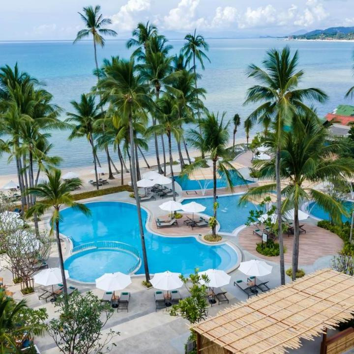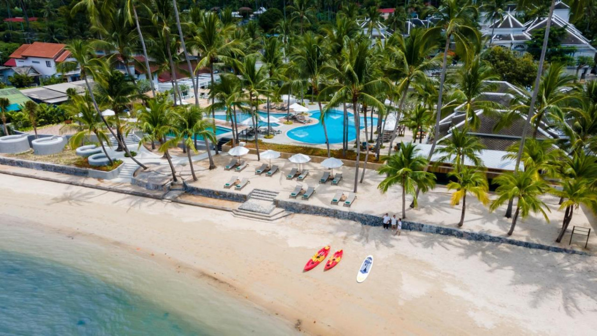 На острове Самуи на пляже Lamai, в 12 км от Международного аэропорта Самуи.