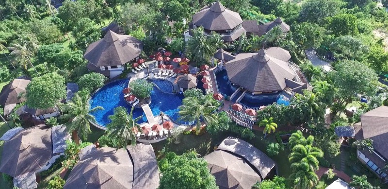 45 км от аэропорта о. Пхукет, на южном побережье о. Пхукет, в районе Найхарн бич, рядом с Храмом Чалонг (Chalong Temple), Равай бич (Rawai Beach), на возвышенности