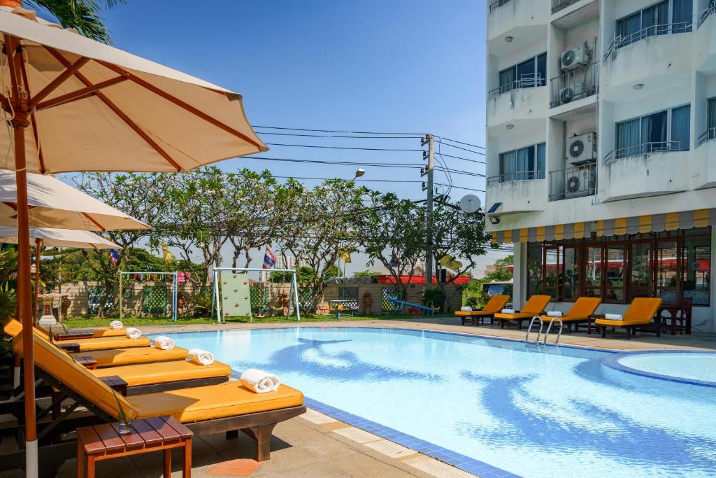 Добрый день! Отдыхали на новый год 2014. Я первый раз была в Тайланде. На мой взгляд отель хороший, номер большой, кровати большие, лучше чем номера в четверке в Египте. С насекомыми проблем не было, у нас был балкончик столик стульчики холодильник тв сейф. Единственное что до туктуков надо идти пешком минут 10 ну а там и недалеко до всей тусовки. Мне напряжным это не показалось))) рядом рынок есть, магазин. Еда. На завтрак лично я всегда ела фрукты и тосты с джемом и маслом, на другое не обращала внимание, яишницы были, сосиски (мне не понравились), ни разу не обедали и не ужинали там, только спать приходил)) к бассейну один раз выходили, никогда там никого нет. Обслуживающий персонал немного тормозит, т.к. не понимают по русски)) но найти общий язык можно!