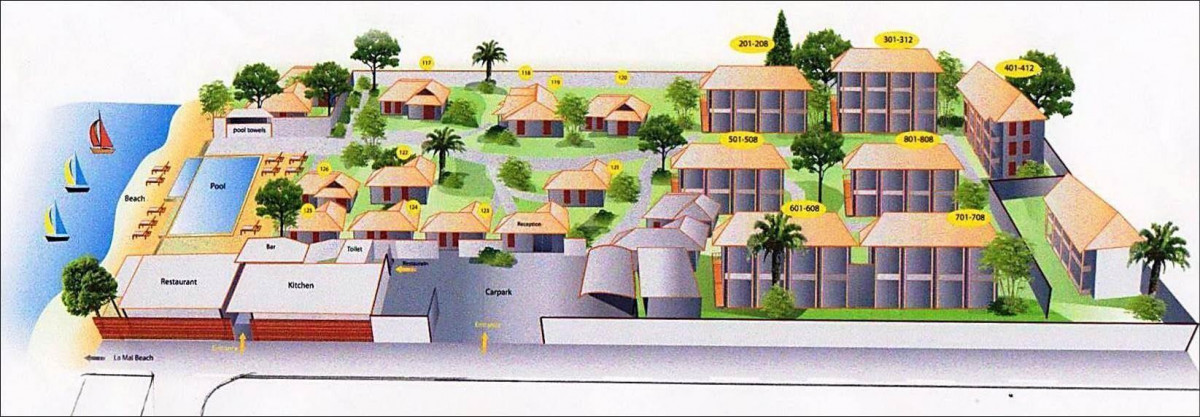 Отель построен в 2000 г. году. Последняя реновация отеля проводилась в 2019 г. году. Площадь территории отеля составляет +66 77 424 550.