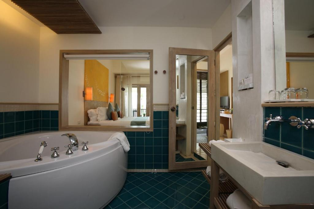 В свадебное путешествие мы с женой долго добирались к чистой воде и пляжу, выбрали почему-то это место. Отель хороший, сервис на уровне, территория красивая, но от этого отеля на море можно только смотреть - купаться невозможно...Прозрачной воды и чистого песка там не увидите. Есть бассейн и джакузи на территории и в номерах, только там народ и купался. Каждому свое, конечно... мы гоняли на мотобайке на другие пляжи.