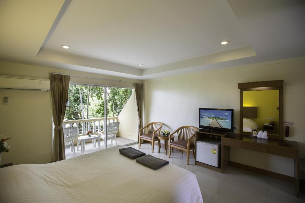 Отличный отель!!! Отдыхали 10 дней, 9 ночей. Плюсы: заселили рано утром!!! отличное расположение - с одной стороны территории выход на море, сразу через дорогу городской пляж, с другой к магазинам. Напротив 7/11,кафе,массаж и куча магазинов и тук-туков. приятный улыбчивый персонал. в номере кондиционер, телевизор с 1 русским каналом и кучей других, большая кровать,столик, 2 кресла (и на балконе ещё пластиковый столик и 2 стула), шкаф с плечиками, мини холодильник, чайник, фен, 2 стакана, 2 кружки, 2 чайные ложки, душ. в номере живности нет никакой. белоснежное постельное и полотенца. гель для душа, шампунь, шапочка, мыло, туалетная бумага, ватные палочки - по мере использования. уборка и смена белья ежедневно, и пол именно моют!!!, а не просто метут. 0.5 воды каждый день на человека. Wi-Fi в каждом корпусе, на лобби и в столовой разные. 2 бассейна для взрослых и детей, шезлонги, столики и полотенца к бассейну. ! Депозит в рублях - пожалуйста)) — Минусом стал завтрак - не шведский стол, а 3 вида блюд на выбор и тосты, джем, масло, кофе, чай, сок и вода в неограниченном количестве. Очень красивая территория! Прудик с рыбками, цветущие кустарники и деревья, пальмы - целый садик)) Я долго выбирала отель и мы с мужем остались ооочень довольны!!! И в следующий раз поедем снова именно сюда))
