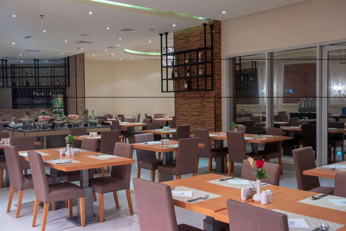 Отдыхал в декабре 2017, сайт заклинил, не могу дату выставить. На счёт "быстро дойти пешком до пляжа" прям совсем далеко от правды. Отель находится в промзоне на границе с пустыней. До населенного пункта идти пешком минут 30 (проверял). Делать в этом селе нечего. Небольшой торговый центр и всё. Даже пошопиться толком не выйдет, только разве что валюту поменять. Из отеля ездит автобус в bin magid beach resort - это пляжный отель той же сети. Когда я там отдыхал, во всю шла стройка вокруг, но выбора нет, пляж только этот. Вокруг отеля склады, стройки и общаги с индусами. Очень много мусора. Из положительного. Рядом алкомаркет, закупаться только там, в отеле цены очень высокие, а больше нигде не продают. Мог бы порадовать вид пустыни из окна по утрам. Но обилие грузовиков и отсутствие звукоизоляции все перечеркивают.