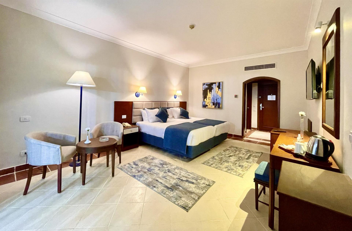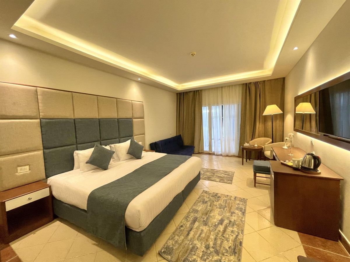 Отдыхали в этом отеле с 24.06 по 8.07.В Египте далеко не 1 раз и ни разу в жизни я не писала плохой отзыв. Территория отеля большая, много горок, много бассейнов, есть зелень. До моря можно пешком, но можно и на автобусе ( если он работает). Море хорошее. Рыбки есть. Сказать чтоб прям убирали пляж - не скажу. Но и сами люди ведут себя некрасиво, засоряют . С номерами обман полный: у нас был номер с балконом / террасой в ваучере ,дали без и пытались рассказать мне, что именно номер без балкона у нас куплен и мы неделю выбивали номер с балконом, тк отдыхали с мужем и ребенком, а мы оба курящие и не хотелось курить в номере.. Номера убитые, убираться стараются, но не айс. То не дают полотенца , то пододеяльники мокрые кладут и приходится бегать и выпрашивать. Несколько дней вызывали сантехника, потому как не было горячей воды. Ресторан могу порекомендовать только восточный из Аля карт. В общем ресторане очень часто люди прям орали из за нехватки столов. Обед и ужин нормально, завтрак пустоват и на протяжении 14 дней одно и тоже. Ни какого все включено в этом отеле нет: пиво приносят в 11 и к обеду его уже нет ни где, кроме бара где ресепшен, так же с другим алкоголем. Персонал приветлив, улыбчив. Гид ужасный ни с одной проблемой к нему не подойти., его интересовало только покупка экскурсии туристами. Спасла нас замечательная менеджер Айгерим, только она и решала наши проблемы. За что ей низкий поклон. Аниматоры это что то- прям выпрашивают положительные отзывы в наглую, была там одна с накаченными губами ,разговаривала она на « ты», просила принести ей виски и требовала телефон чтоб отзыв себе написать. Алексей с Белоруссии ( аниматор) вообще ходил какой то отмороженный, а вот другие аниматоры отличные. Рядом с отелем есть пару магазинов, но с ценами на такси мы ездили в город. Фикс прайс самый выгодный как показала практика.