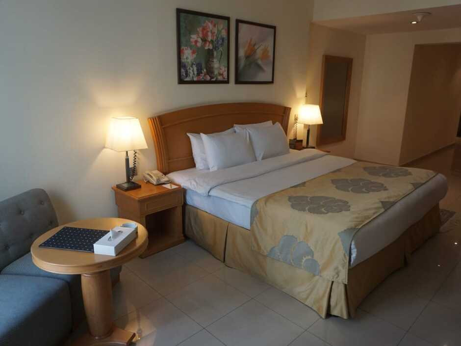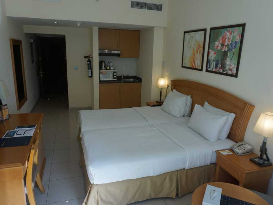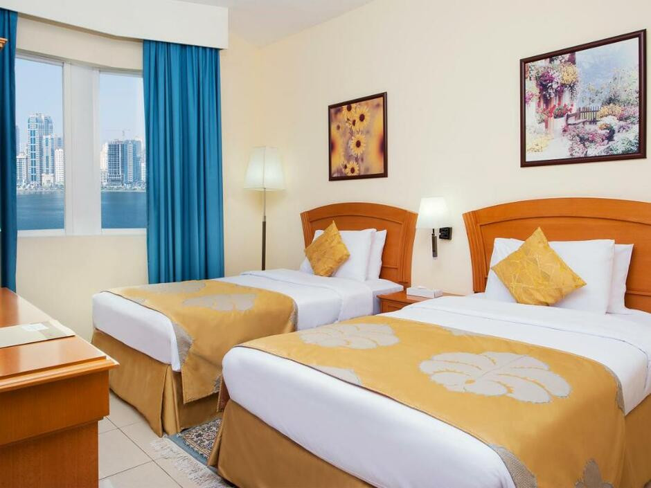 Заселили сразу. Брали номер на троих взрослых. Одеяло и полотенца давали только для двоих. В номере было холодно, кондиционер на плюс не справлялся. Просили еще одно одеяло и полотенце для третьего человека- сказали не положено! Сам номер большой,есть кухня,стиральная машина, микроволновка,холодильник и плита. Два туалета и одна ванна. У нас был номер большой но вид на соседнее здание. Трансфера до пляжа нет! Хотя заявлено! Очень красивый вид из кафе. Голодными не были, есть из чего выбрать. Меню каждый день одинаковое. С собой можно было взять кексик))) в номере тоже оставляли кофе и чай в пакетах,воду. Расположение отличное, выбрали из за него. Но до пляжа пешком далеко, но мы ходили(40-55минут с перерывом на мороженное в магазине Нестро))) такси до пляжа 14-19 дирхам. Бассейн уставший-были один раз - не советую, раздевалки мрак! Интерьер устаревший как и во многих местах Шарджи. В самом здании есть магазин и аптеки, но советую сходить в большой супермаркет за отелем будет дешевле. В целом по отелю на бюджетную 4*