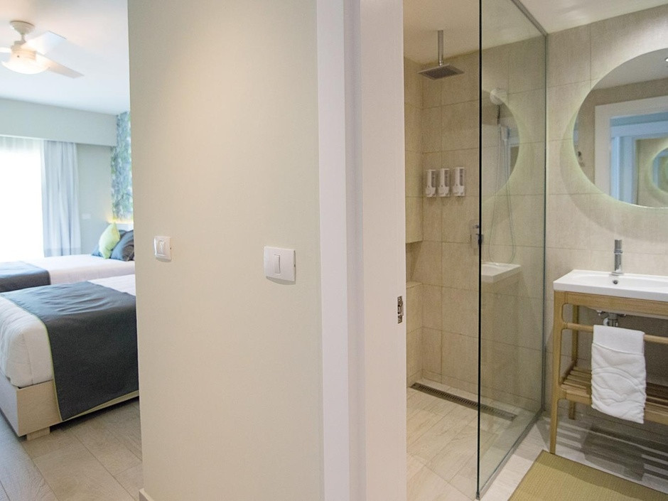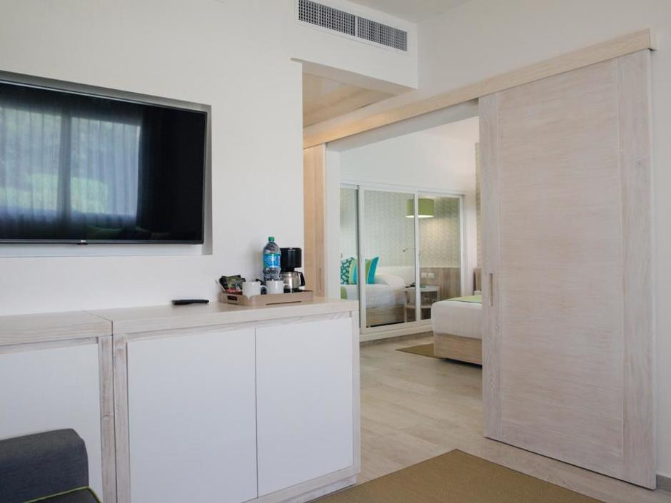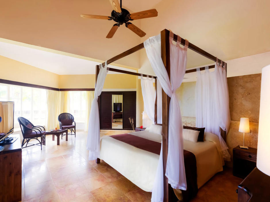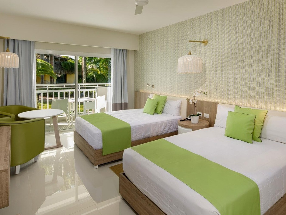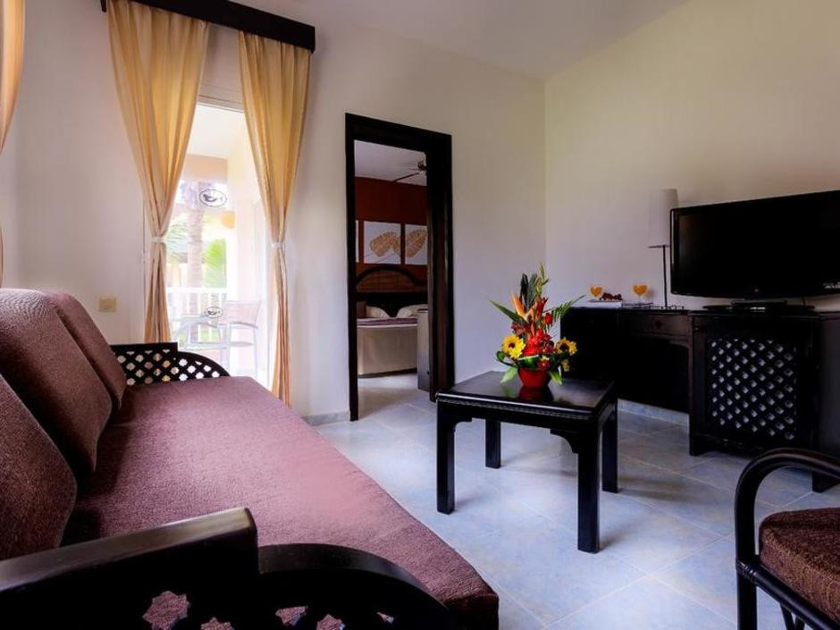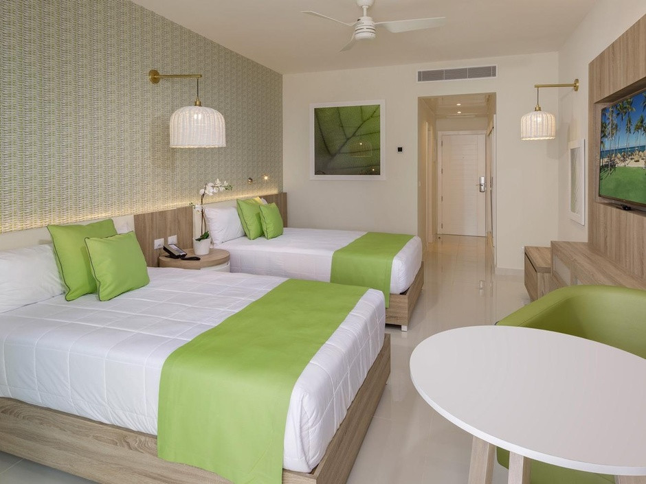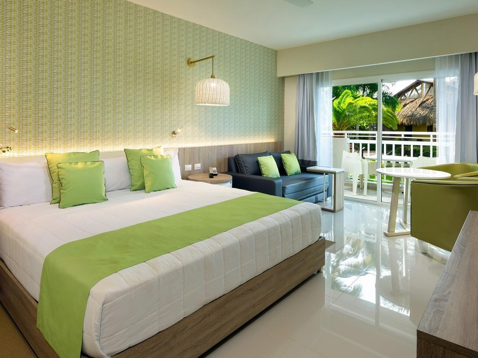 Отдыхали в отеле с 10.05.2018 г. прочитали перед этим отзывы на различных сайтах, уточнили у знакомых и т.д., были смешанные чувства. Как раз в это время были хорошие скидки на номера "фемели суит" - двухкомнатные номера с хорошим дизайном, и решили брать! Заселили нас в 41 корпус, читали раннее о 31 корпусе хорошие отзывы и может он лучше, но только тем, что ближе к ресепшену и ресторану на пару метров))) а наш корпус больше. Нас все устроило в номере и мы не меняли его, хотя раньше отдыхая в других странах приходилось. Убирались каждый день и меняли все полотенца, напитки в номере были бесплатные (фанта, кола, спрайт, вода), также был чай и кофе с кофемашиной для него. Хорошая анимация вечером, каждый раз, как новое шоу с фейерверком в виде фонтана. Живая музыка и танцы после анимации. Днем фитнес-анимация в бассейне, на пляже волейбол и футбол. Хорошие большие горки в собственном аквапарке, не работала только одна - с широким спуском на круге. На пляже можно взять лодку наподобие байдарки бесплатно для отдыхающих и прокатиться подальше от берега. Песок мелкий и заход в океан чистый, вода прозрачная, лазурного цвета. Перед нашим приездом был дождь и на берег попало много травы и мусора, но все это убиралось персоналом в отдельные кучи и вывозили трактором до обеда, и был настоящий рай. Еды всегда было много и хороший выбор, различные фрукты (папайя, арбуз, дыня, ананас, банан, фрукт между лимоном и нашим апельсином, персики, думаю, консервированные по вкусу)) много сладкого и вкусное мороженное. Утром стойка для тех, кто много дегустировал вечером напитки)) с кровавой мери и т.д. свежевыжатые соки (папайя, банан, апельсин, арбуз, ананас, огурец, свекла и т.д.). Если встать к морю лицом, то по левую руку есть магазины с хорошими ценами, значительно дешевле, чем на экскурсиях с сувенирами, одеждой, напитками и сигарами. Русский магазин с фиксированной ценой и перед ним еще два хороших магазина, где можно торговаться.Рекомендуем заглянуть)). В русском магазине можно приобрести экскурсию на о.Саона за 60$ за человека, от туроператора минимум за 99$ за человека. Также ездили на экскурсию Санто-Доминго, о чем ни капли не пожалели, от анекса стоит 99$ за человека. На которой за 1$ двоих человек отвозят еще в 4 пещеру при посещении пещер.