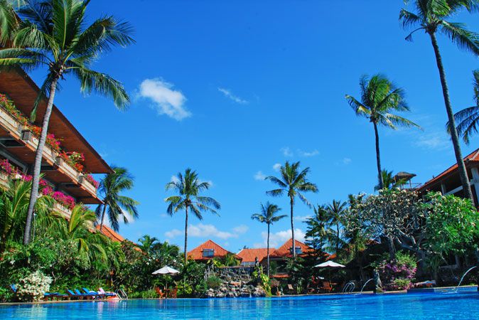в 15 минутах езды от аэропорта, в 20 минутах езды от центра Кута, через дорогу от моря.
