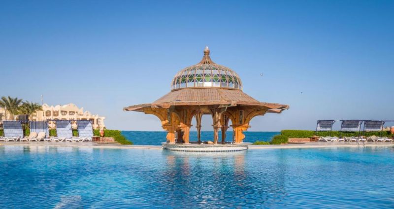 Отель не плох , и даже очень. Отдыхали с сыном в конце мая. Перелет Pegasus через Стамбул из Питера. Не утомил . Почему именно он ? Много моря. Разного. Лагуна, залив, мелководье , глубина , риф какой никакой. Куча басиков. Горки. Аквапарк без ватрушек , для нас это плюс. Территория большая , из 3 отелей. Номер нормальный , убирали обычно. Еда в рестике неплохая, в общем как и везде. Морепродуктов небыло. Жили на 1 этаже 1149. Плохо , что на первом этаже не ловит интернет , у нас был Оранж. Получается как в яме за обрывом , приходилось выходить на терассу. Купил сыну отельный вай фай. Вечером скучновато. Весь тусняк в Эль паласио. В отеле есть банкомат , выдает фунты с карты Юнионпэй Россельхозбанка. Официальный курс был 1.60 , он выдавал по 1.80 плюс 399 руб за операцию. Снимать лучше один раз много. Хотя курс не очень выгодный. Ездили в Хургада Сити Центр. 4 этажа , есть неплохой супермаркет , там фунты. И пару раз на Шератон сыну в Макдональдс захотелось. В лагуне и заливе сетки от акул. Накупались хорошо. Вернулся бы я , - да.