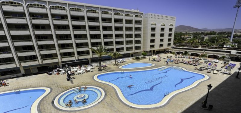 В 25 км от южного аэропорта Тенерифе, в 700 м от пляжа, напротив олимпийского стадиона «Антонио Домингез», рядом с полями для гольфа.