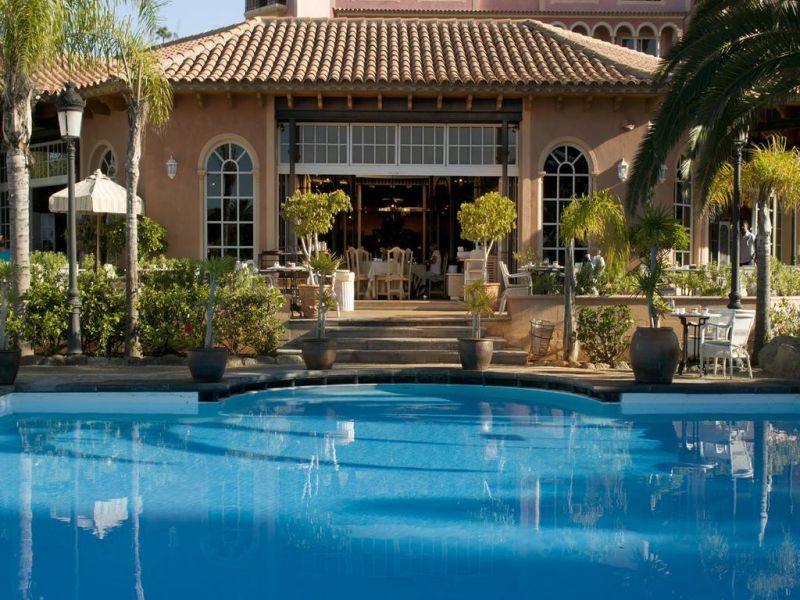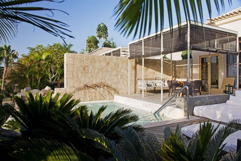 В 20 км от аэропорта Тенерифе, в 80 км от города Санта-Крус, в 5 км от курортной зоны Лос-Кристианос, на возвышенности в курортной зоне Коста-Адехе, на первой линии.